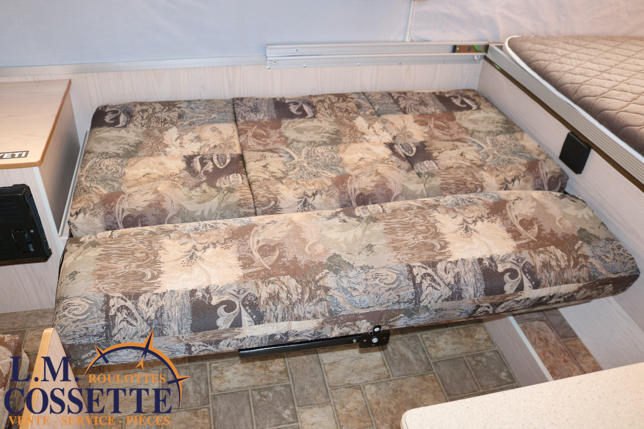 BELLE PETITE TENTE-ROULOTTE AVEC DIVAN !!! Elle possède un divan , qui peut se transformer rapidement en lit ! Elle possède plusieurs rangements et des tiroirs . Le lit avant mesure 56 pouces x 76 pouces et celui d’en arrière mesure 46 pouces x 76 pouces . Le kit de barres à torsion fait pour les tente-roulottes , est inclus avec celle-ci . La longueur hors tout , une fois ouverte , est de 19 pieds 7 pouces . Venez la voir , son excellente condition vous ravira ! Vous pouvez nous rejoindre au (819)378-2491 .