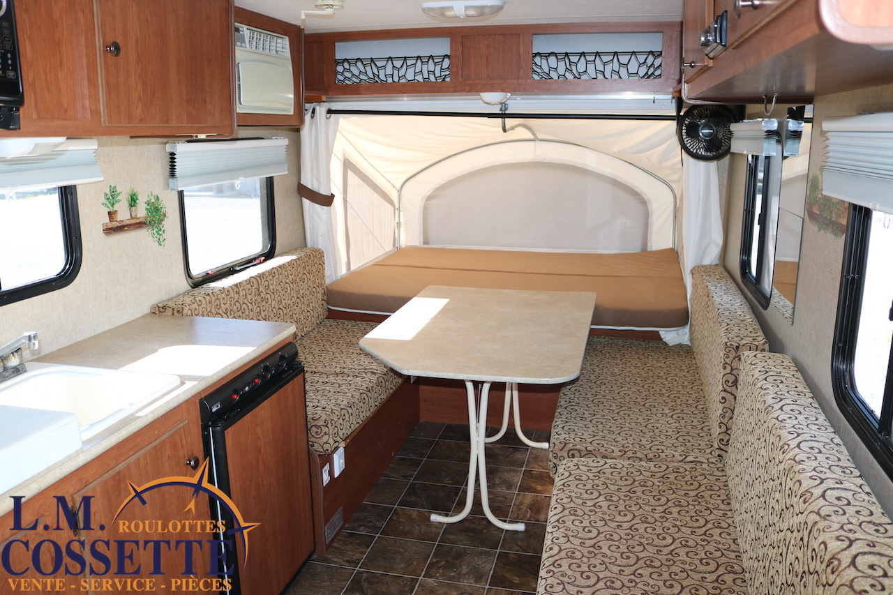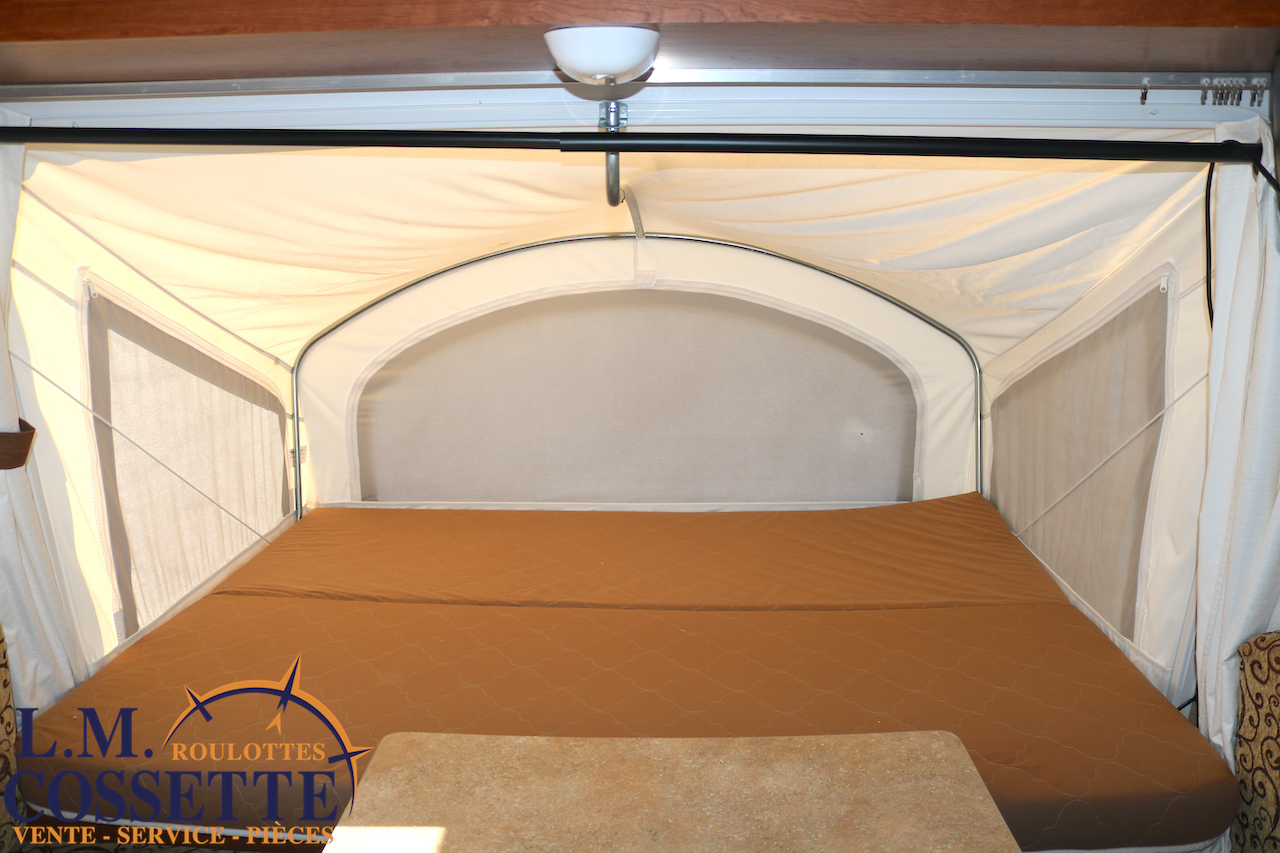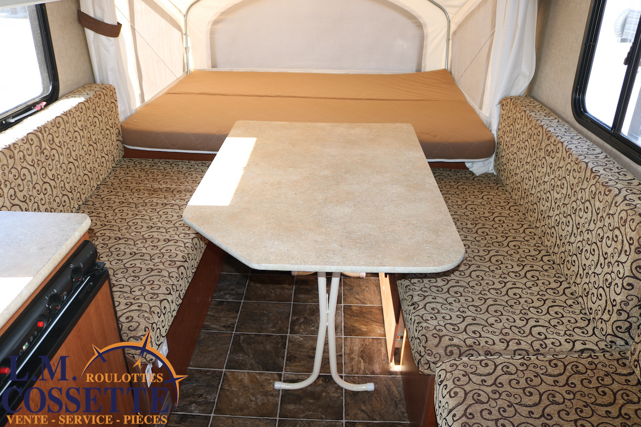 MIGNONNE PETITE ROULOTTE HYBRIDE !!! Elle est très légère , seulement 2361 lbs ! Elle possède un lit à chaque extrémité , celui d’en avant a 56 pouces x 70 pouces , et celui d’en arrière a 54 pouces x 70 pouces . Sa longueur , hors tout ouverte , est de 22 pieds 3 pouces . Elle possède plusieurs petits espaces de rangement . La table est très grande . De plus , il y a beaucoup d’espace sur le comptoir . Venez la voir , son excellente condition vous ravira ! Vous pouvez nous rejoindre au (819)378-2491 .