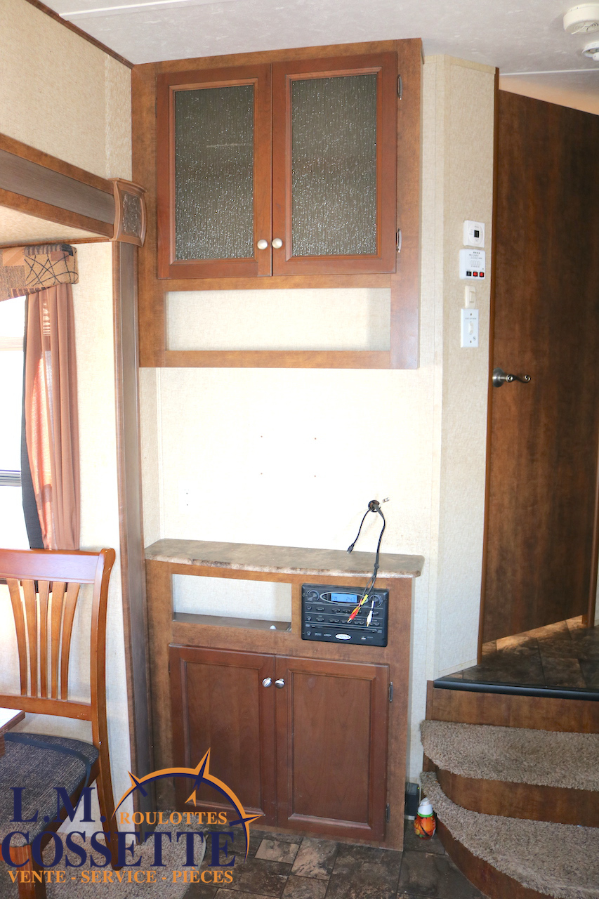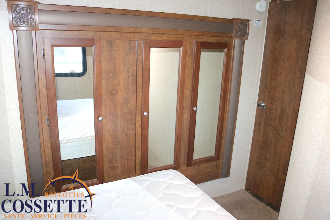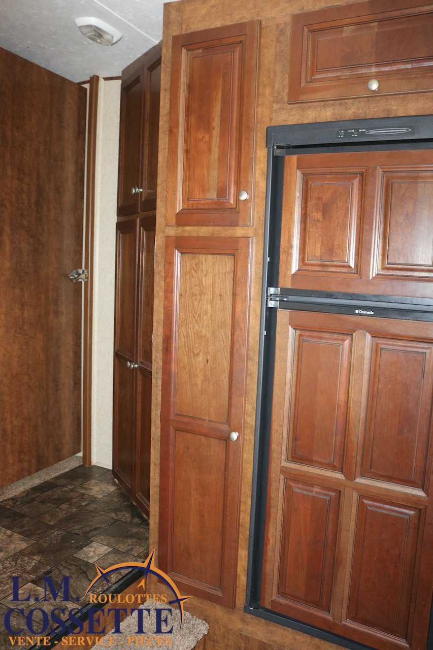 SPLENDIDE FIFTH WHEEL DE 26 PIEDS AVEC RALLONGE DANS LA CHAMBRE !!! La chambre , à l’avant , possède une rallonge dotée de garde-robe et d’armoires ! Un autre espace de rangement est situé dans le couloir et elle possède , de plus , un garde-manger tout juste à côté du réfrigérateur ! Son salon à l’arrière possède de grandes fenêtres , permettant d’avoir une vue incroyable vers l’arrière ! Ses coffres extérieures sont immenses et ses services sont dissimulés dans un petit coffre . Venez la voir , son aménagement et son rangement vous étonnerons ! Vous pouvez nous rejoindre au (819)378-2491 .