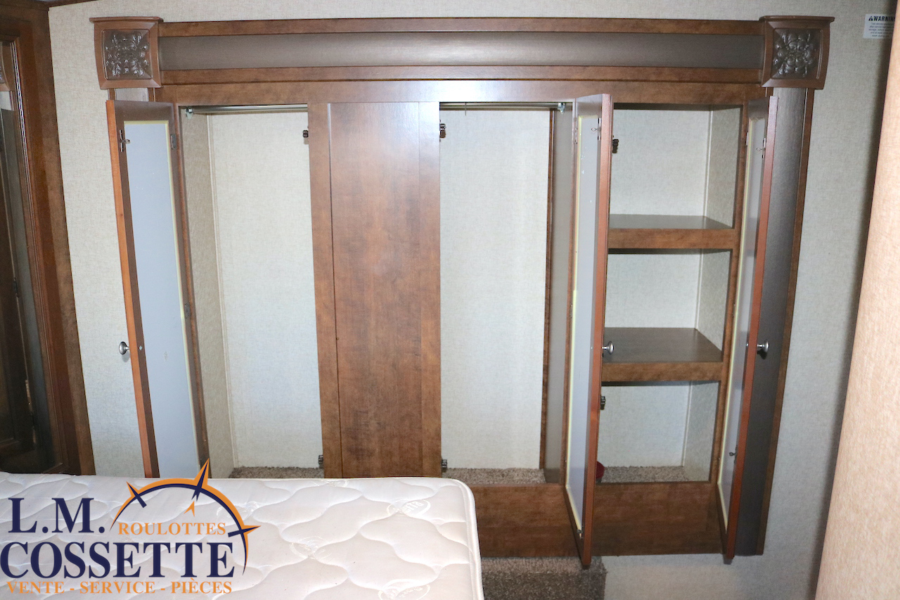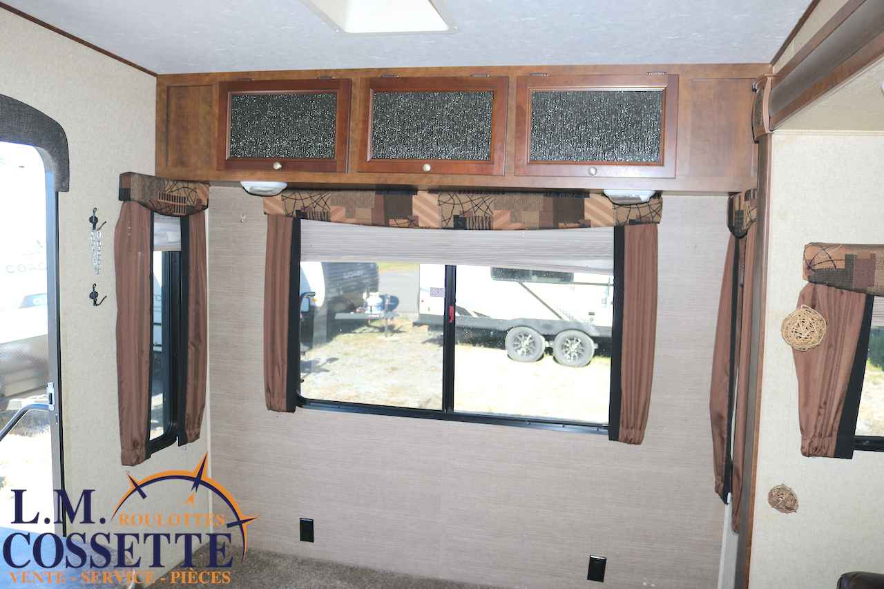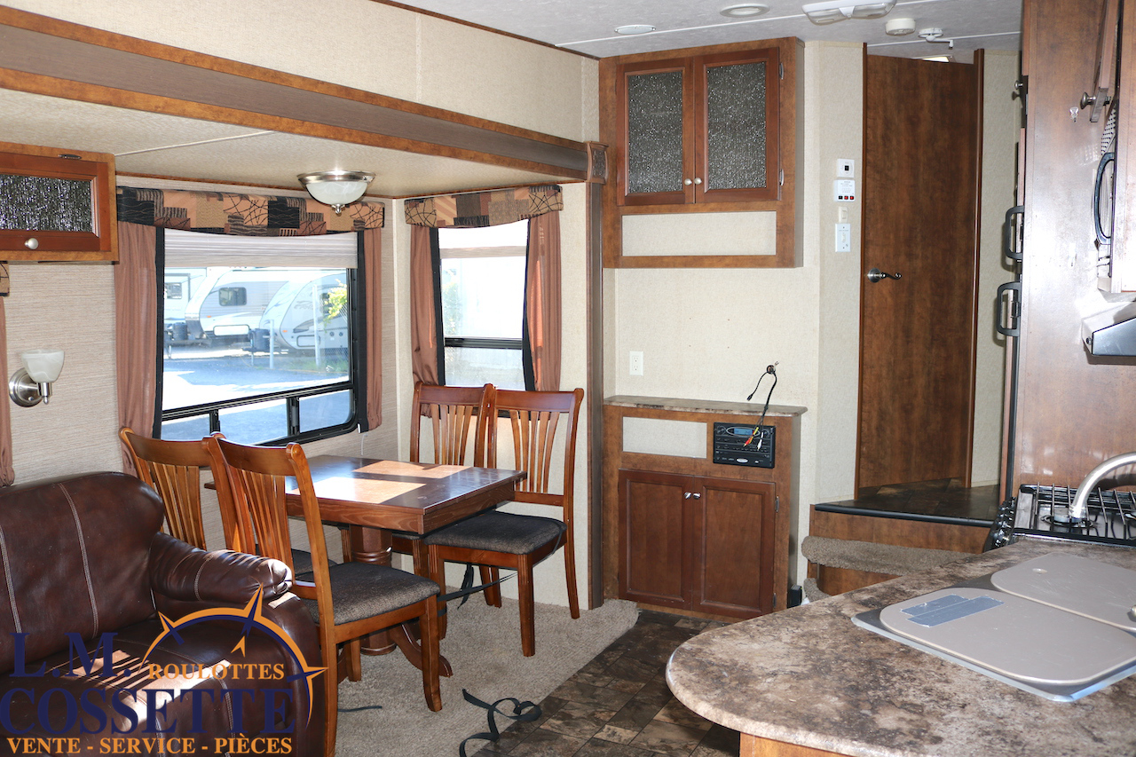 SPLENDIDE FIFTH WHEEL DE 26 PIEDS AVEC RALLONGE DANS LA CHAMBRE !!! La chambre , à l’avant , possède une rallonge dotée de garde-robe et d’armoires ! Un autre espace de rangement est situé dans le couloir et elle possède , de plus , un garde-manger tout juste à côté du réfrigérateur ! Son salon à l’arrière possède de grandes fenêtres , permettant d’avoir une vue incroyable vers l’arrière ! Ses coffres extérieures sont immenses et ses services sont dissimulés dans un petit coffre . Venez la voir , son aménagement et son rangement vous étonnerons ! Vous pouvez nous rejoindre au (819)378-2491 .