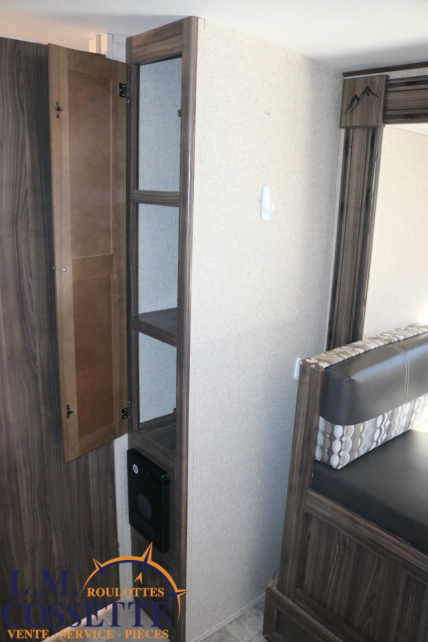 MAGNIFIQUE ROULOTTE AVEC RALLONGE POUR LA BANQUETTE !!! Elle possède un lit accessible des deux côtés , ainsi qu’une rallonge pour la banquette ! La salle de bain est incroyable avec un bel aménagement et une grande lingerie . Elle est dotée , de plus , d’un pratique garde-manger situé tout juste face au réfrigérateur ! Son coffre extérieur est grand et fait la largeur de la roulotte . Venez la voir , l’excellente condition de cette roulotte vous étonnera ! Vous pouvez nous rejoindre au (819)378-2491 .