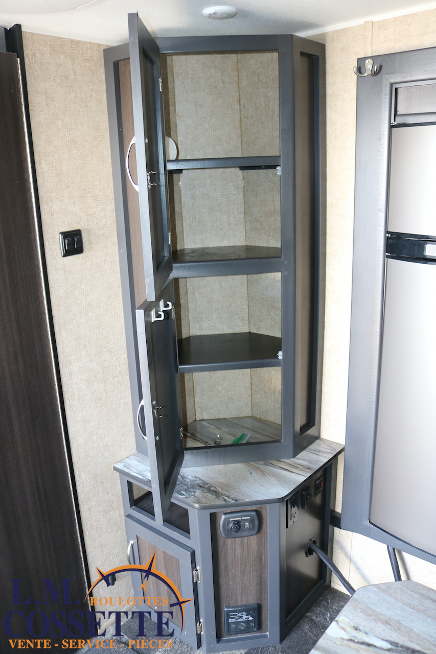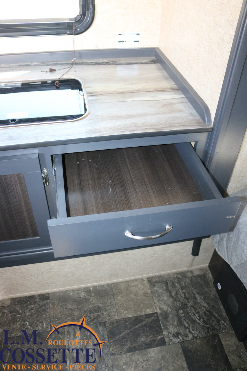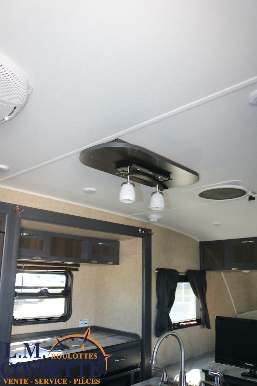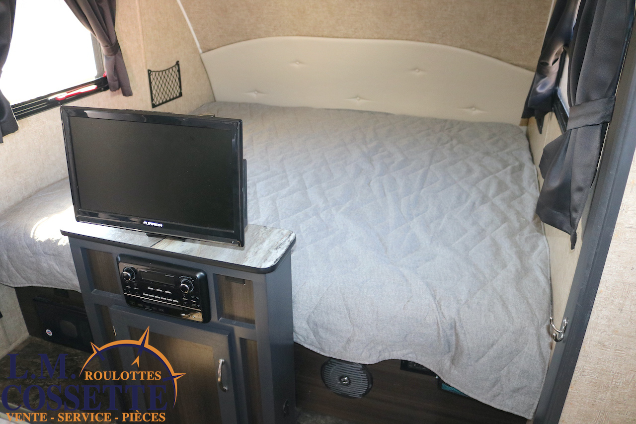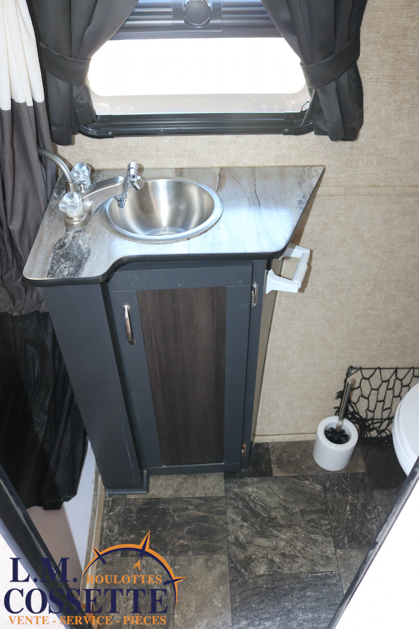 ÉTONNANTE PETITE ROULOTTE AVEC DEUX RALLONGES !!! Elle ne pèse que 2895 lbs , et ce avec deux rallonges ! Les deux rallonges permettent d’avoir au centre de la roulotte , un îlot comprenant l’évier et même un cellier pour le vin . Une petite table se déplie vis à vis le divan , permettant d’avoir un endroit pour manger . Elle possède un bel espace comptoir et plusieurs espaces de rangement . Le lit mesure 78 pouces x 74 pouces . Ses fenêtres sont de type ”frameless” , lui donnant un look des plus luxueux . Venez la voir , son excellente condition et la rareté de ce modèle vous ravira ! Vous pouvez nous rejoindre au (819)378-2491 .