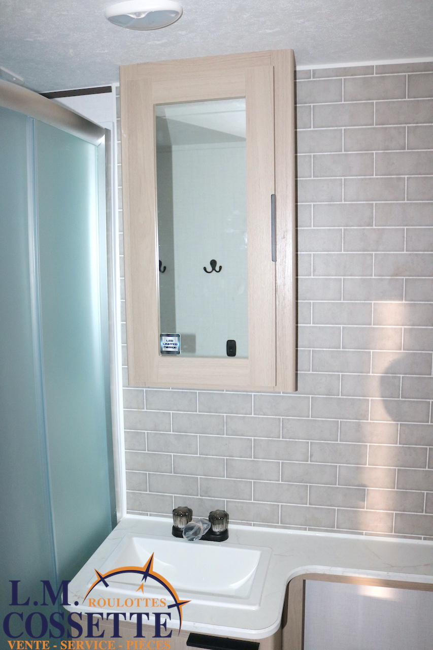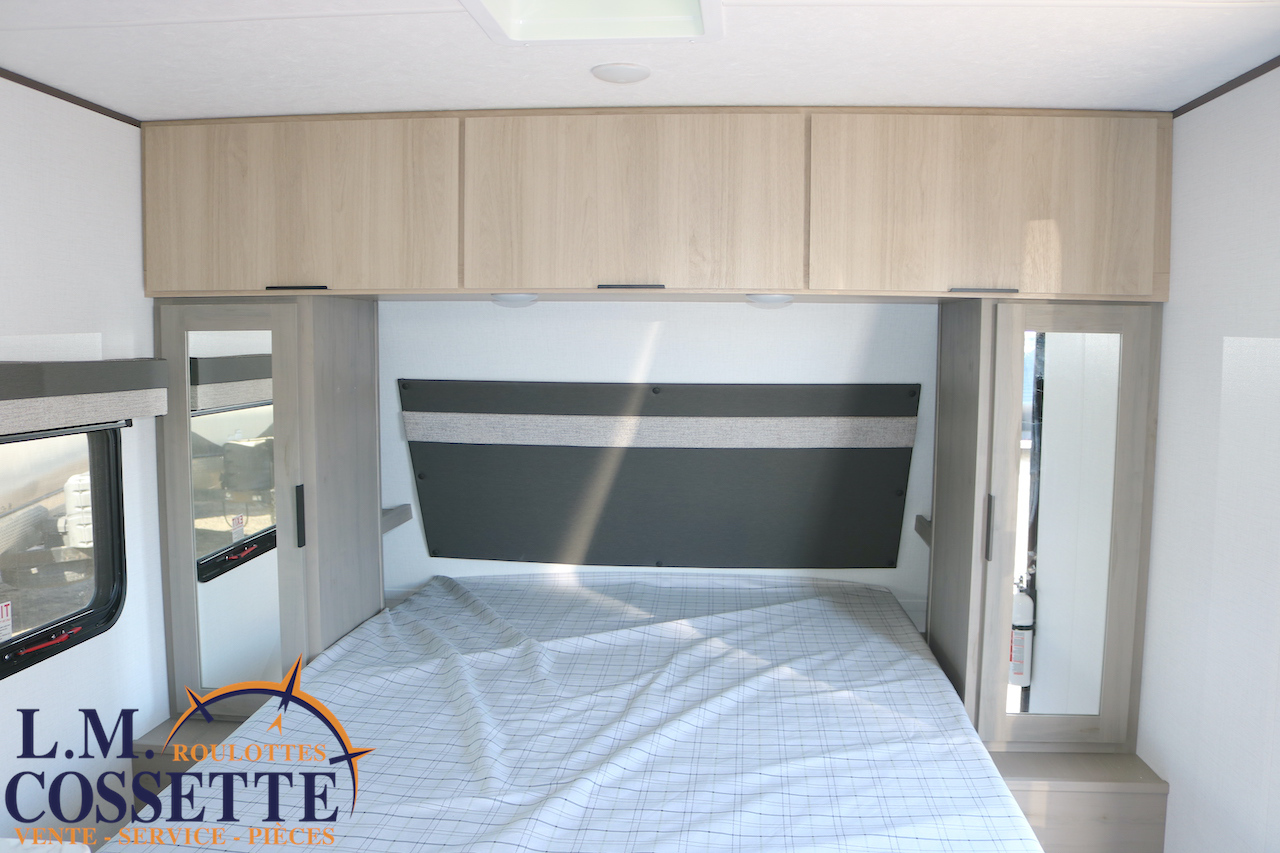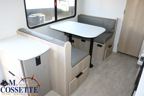 PARFAITE ROULOTTE POUR COUPLE !!! Modèle fantastique , idéal pour un couple voulant une roulotte avec beaucoup de rangement . Elle possède une multitude d’armoires en hauteur , et plein de tiroirs , tel qu’a côté de la porte d’entrée , sous les banquettes , au comptoir , sous le frigo , sans oublier dans la salle de bain . De plus , elle possède un pratique garde-manger tout juste à côté du réfrigérateur . L’évier est grand , et le comptoir a beaucoup d’espace . Venez la voir , ses avantages et son décor moderne vous ravirons ! Vous pouvez nous rejoindre au (819)378-2491 .
