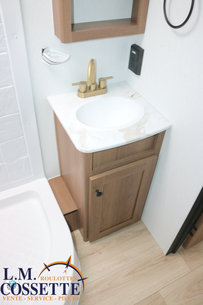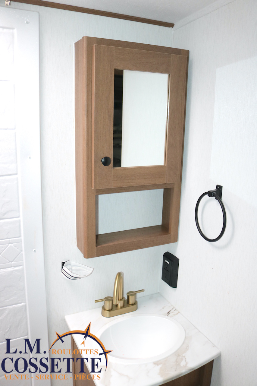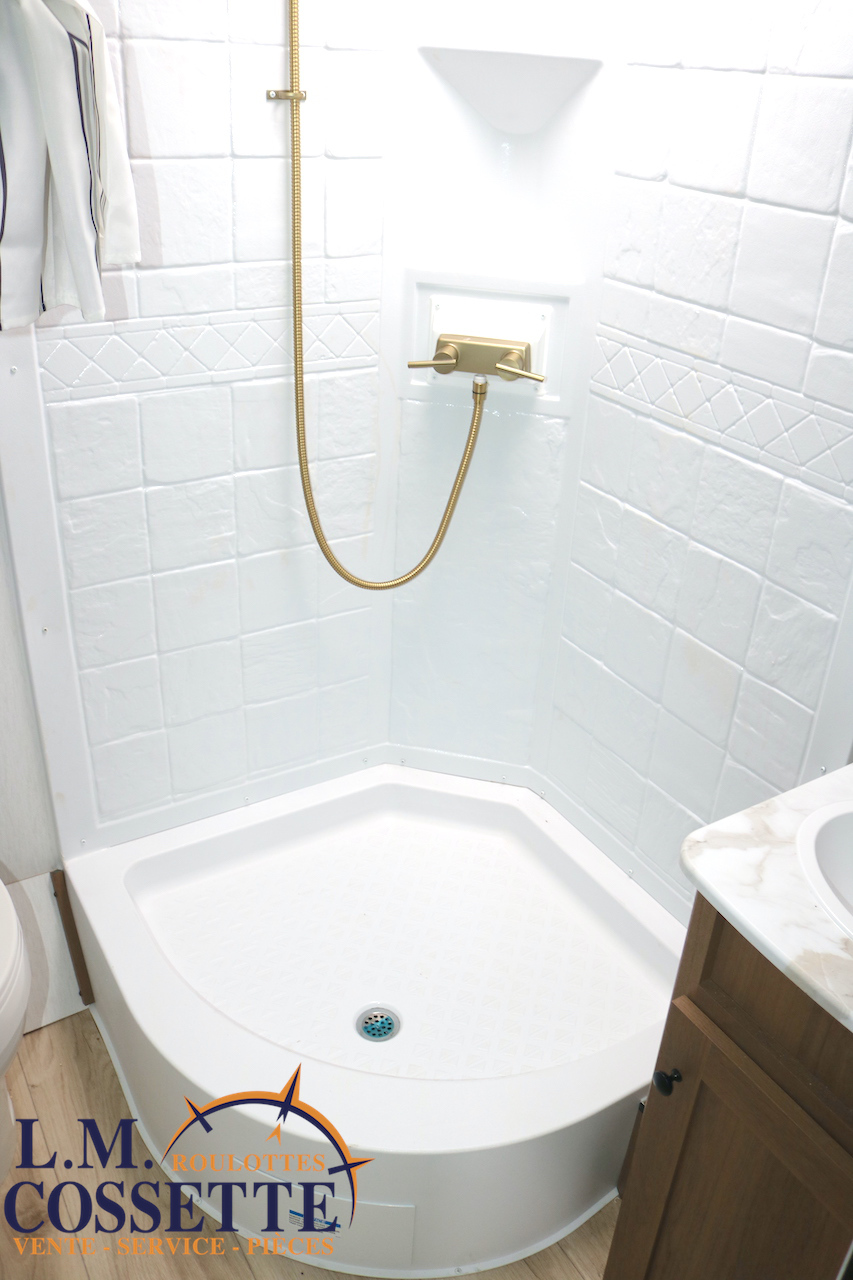 MAGNIFIQUE ROULOTTE AVEC IMMENSE SALLE DE BAIN À L’ARRIÈRE !!! C’est une roulotte de 20 pieds , mais avec un grand espace central . La salle de bain à l’arrière est immense , avec une douche en coin , et une très grande lingerie . Son comptoir de cuisine est vaste , l’évier est grand ( couvert d’évier inclus ) , et deux tiroirs complète le tout . Elle est , de plus , équipé d’une grande cuisine extérieure comprenant un frigo , un évier et un petit poêle au gas propane . Venez la voir , son décor charmeur vous raviras ! Vous pouvez nous rejoindre au (819)378-2491 .