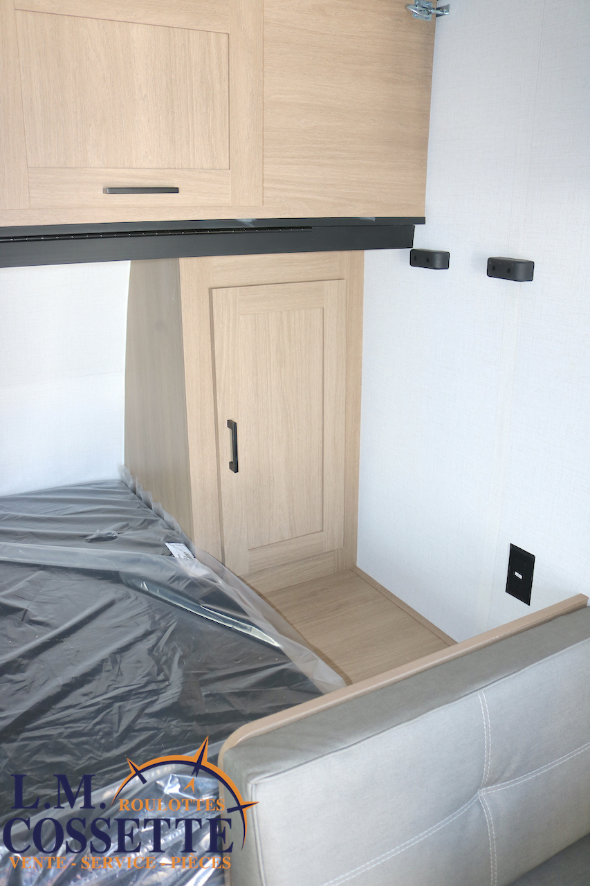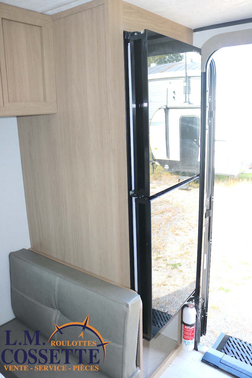ADORABLE PETITE ROULOTTE AVEC PORTE ARRIÈRE !!! La porte à l’arrière , permet d’avoir un aménagement des plus avantageux pour l’espace et le rangement . Un auvent électrique est installé sur le côté , et un autre à l’arrière pour couvrir la porte d’entrée . L’armoire au-dessus du lit , peut se rabattre pour se transformer en petit lit pour un enfant . Elle possède un bel espace de travail sur le comptoir . Elle possède , de plus , plusieurs armoires en hauteur et deux tiroirs au comptoir . Venez la voir , ses nombreux avantages vous ravirons . Vous pouvez nous rejoindre au (819)378-2491 .