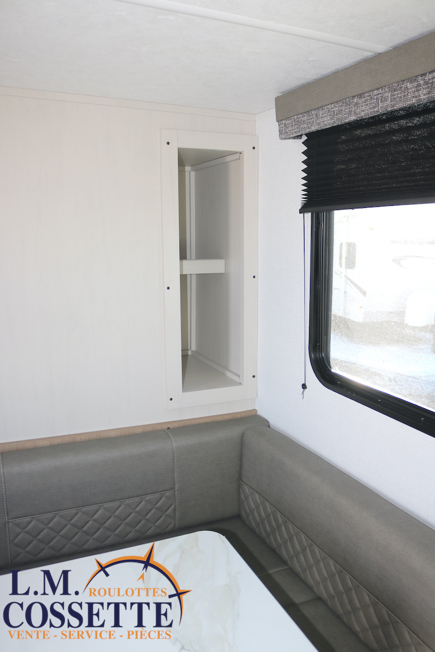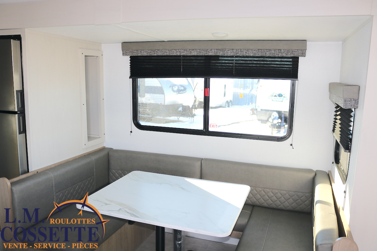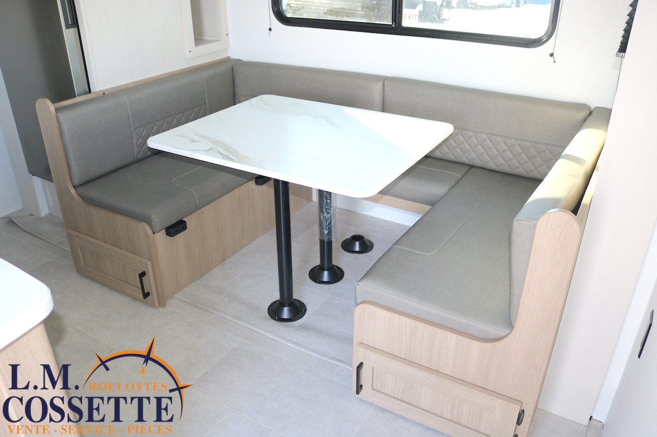 SPLENDIDE ROULOTTE FAMILIALE AVEC RALLONGE POUR LA BANQUETTE !!! Elle possède beaucoup de rangement , dont un très grand garde-manger derrière l’emplacement de la télévision ! Il y a beaucoup d’espace sur le comptoir de la cuisine . Elle possède , de plus , une grande banquette en ”U” , permettant d’y asseoir plus de personnes . Elle est spacieuse et très épurée , avec un grand espace près de l’entré . Venez la voir , ses multiples avantages vous ravirons ! Vous pouvez nous rejoindre au (819)378-2491 .