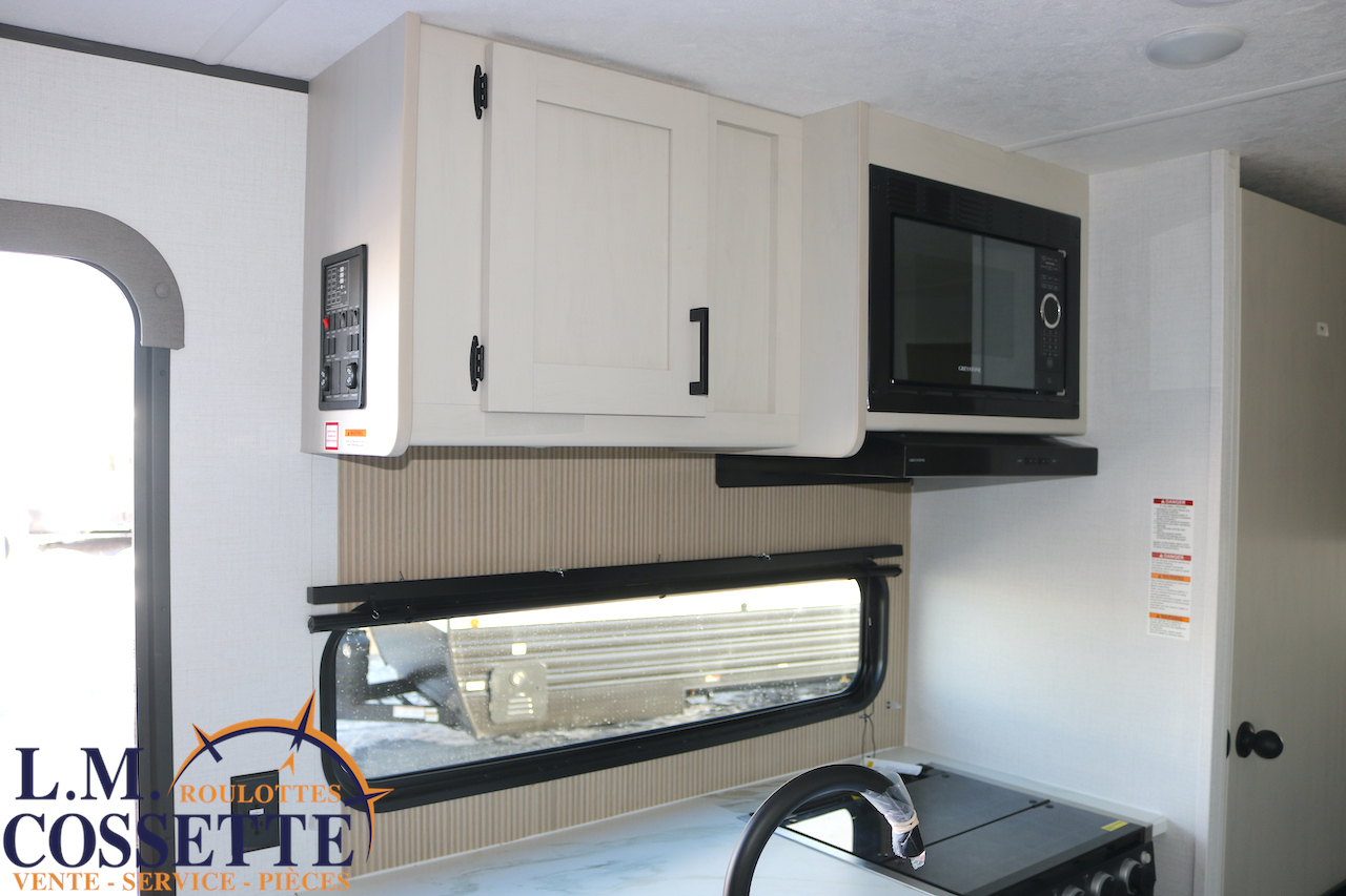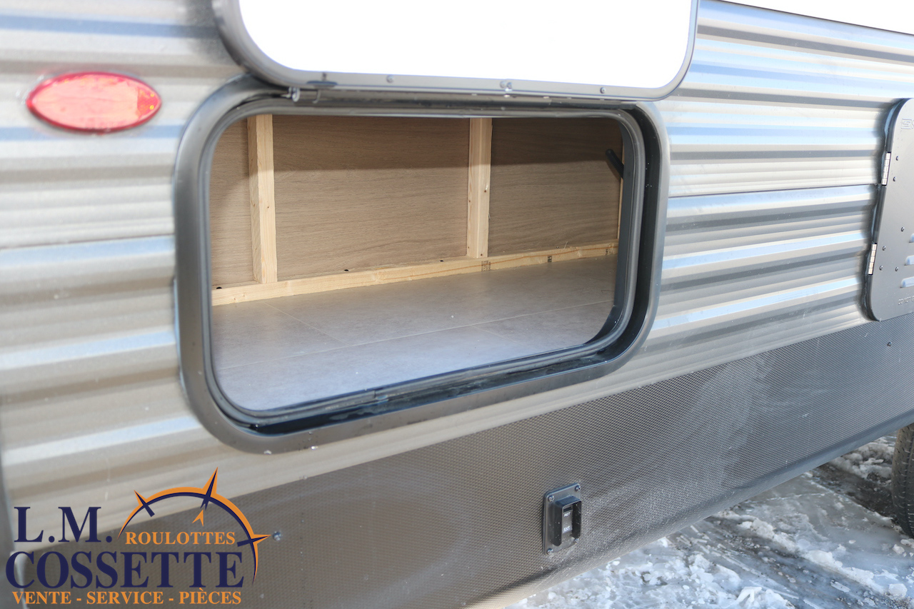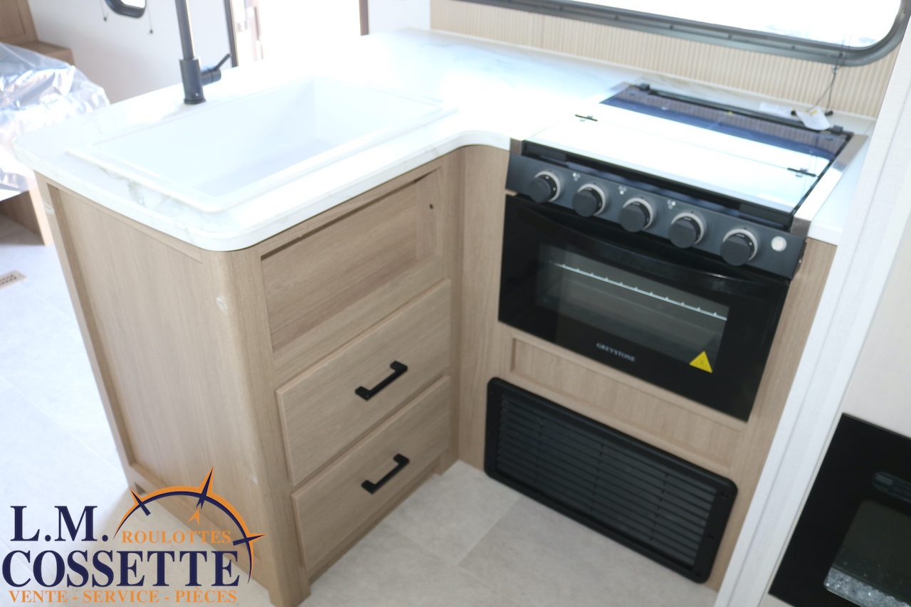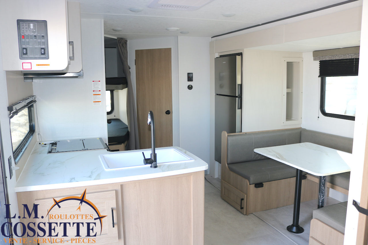 SPLENDIDE ROULOTTE FAMILIALE AVEC RALLONGE POUR LA BANQUETTE !!! Elle possède beaucoup de rangement , dont un très grand garde-manger derrière l’emplacement de la télévision ! Il y a beaucoup d’espace sur le comptoir de la cuisine . Elle possède , de plus , une grande banquette en ”U” , permettant d’y asseoir plus de personnes . Elle est spacieuse et très épurée , avec un grand espace près de l’entré . Venez la voir , ses multiples avantages vous ravirons ! Vous pouvez nous rejoindre au (819)378-2491 .