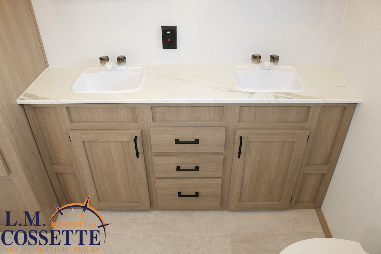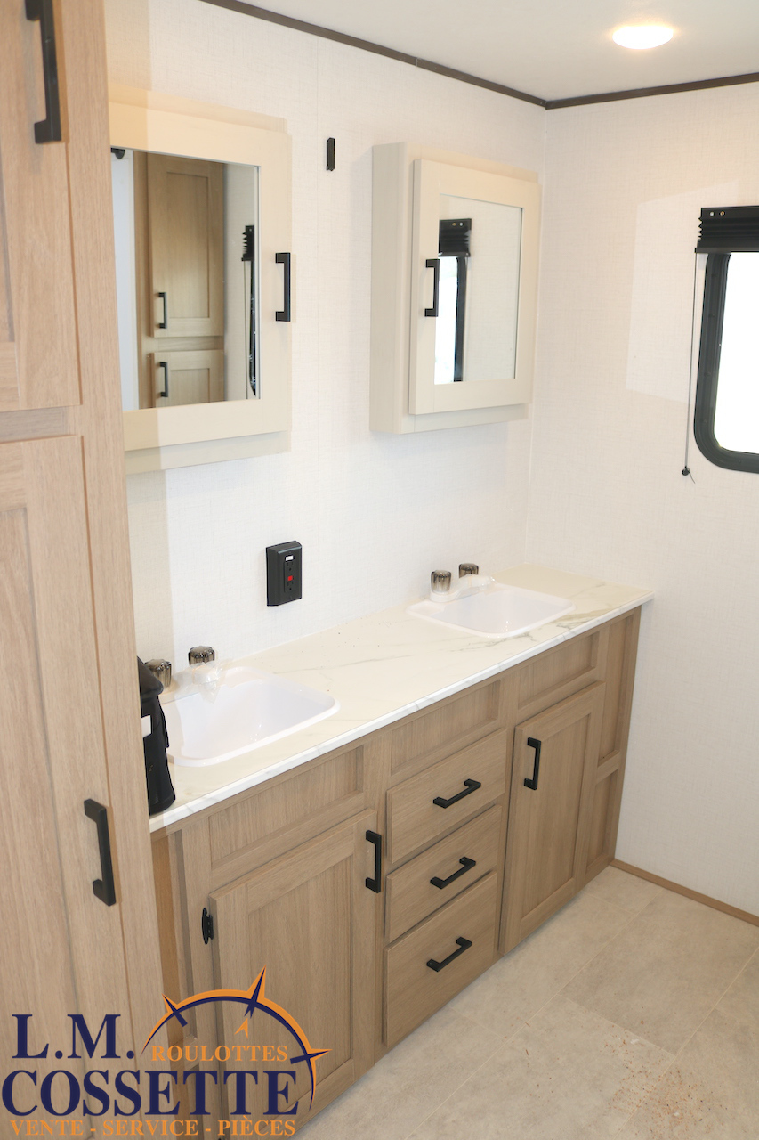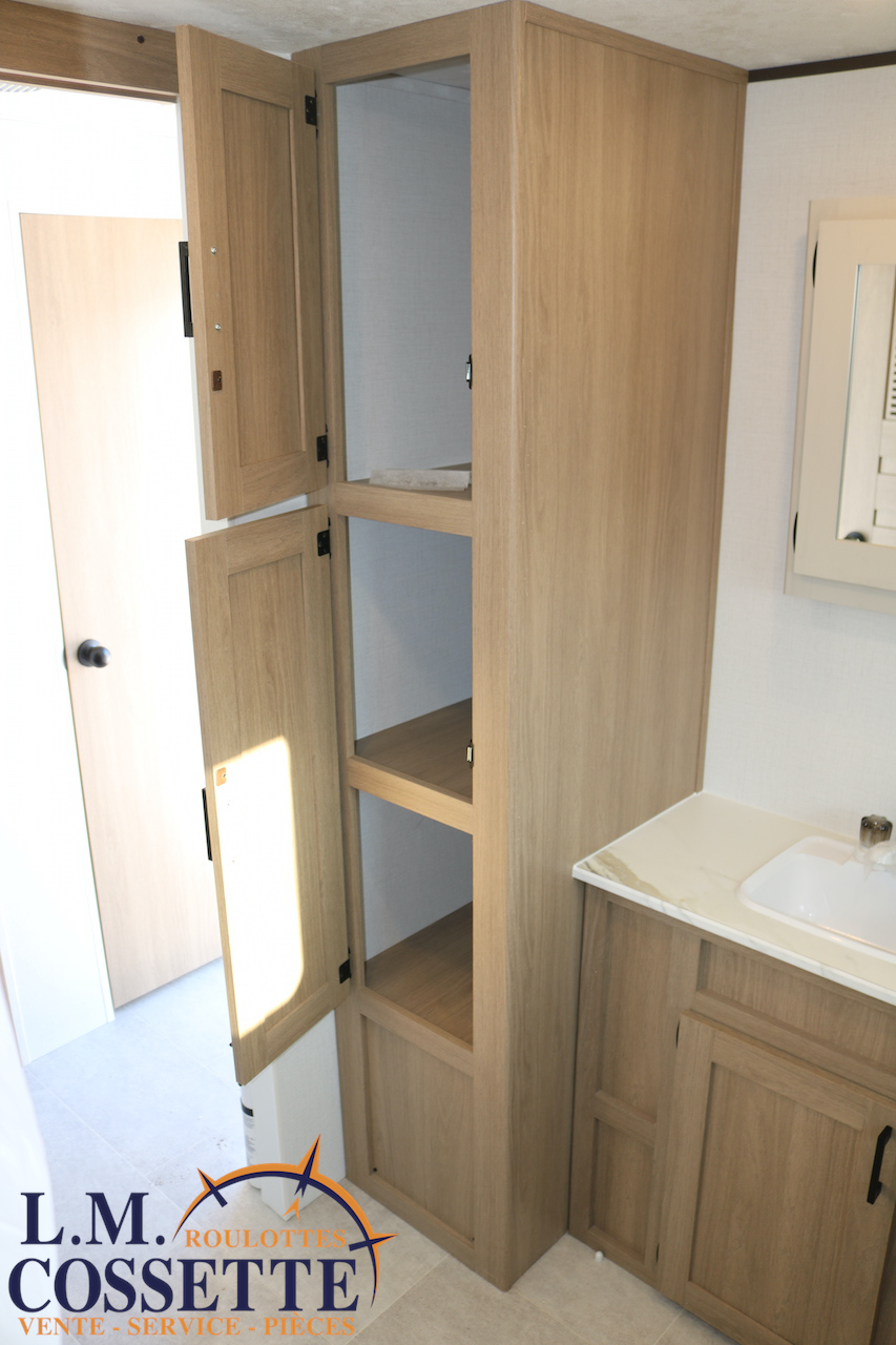 MAGNIFIQUE MODÈLE AVEC IMMENSE SALLE DE BAIN À L’ARRIÈRE !!! La salle de bain est tout simplement parfaite ! Elle possède deux lavabos , plusieurs espaces de rangement , et même un espace pour y mettre une laveuse / sécheuse . Elle possède , de plus , un pratique garde-robe d’entrée , très vaste . Le comptoir de cuisine est grand , et doté de plusieurs tiroirs . Venez la voir , son décor et ses nombreux avantages vont vous étonné ! Vous pouvez nous rejoindre au (819)378-2491 .