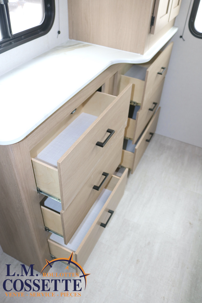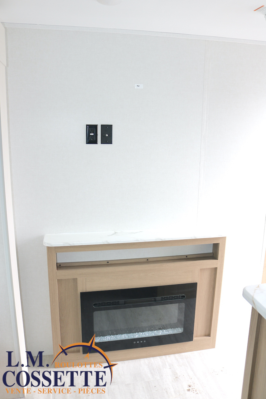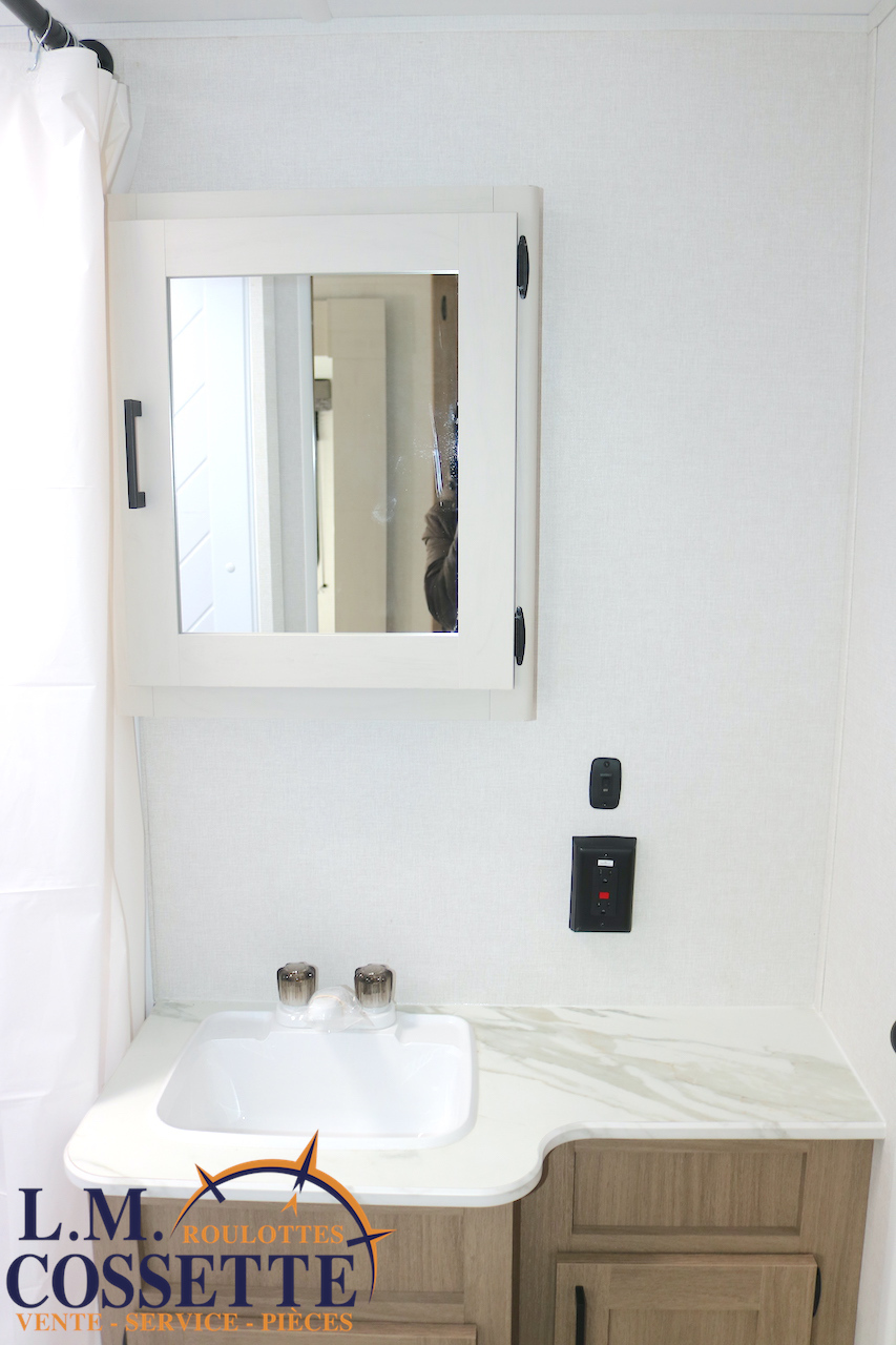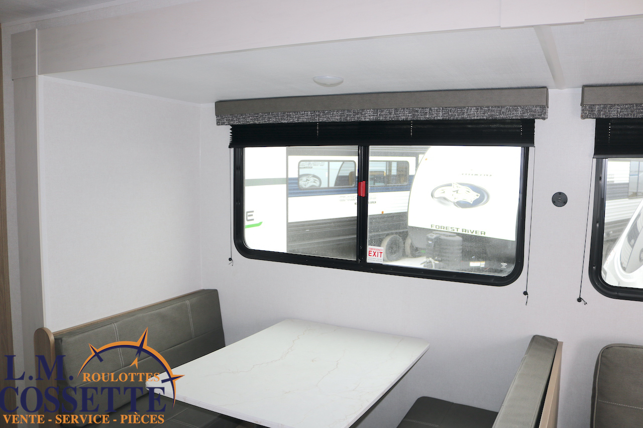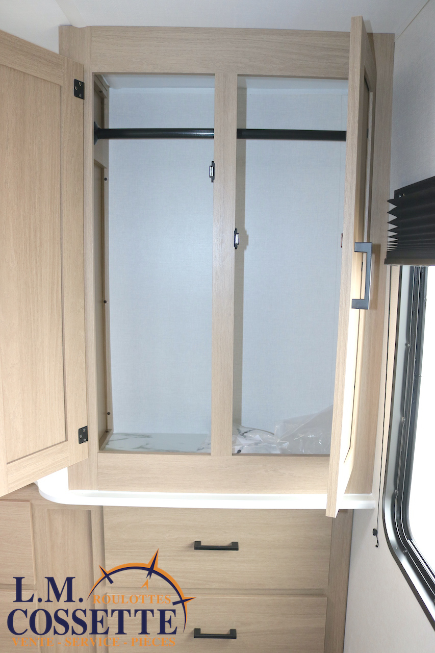 ATTRAYANTE ROULOTTE FAMILIALE AVEC GRAND LIT QUEEN SUPERPOSÉS !!! La chambre principale possède une rallonge pour le lit , dont les dimensions sont de 70 pouces x 80 pouces . Cette chambre est spacieuse , et possède plusieurs tiroirs , ainsi qu’un garde-robe . Elle possède , de plus , une pratique lingerie dans le petit couloir face à la salle de bain . La deuxième chambre , quand à elle , possède deux grand lits queen ( 60 pouces x 80 pouces ) superposés . Elle est équipé d’une petite cuisine extérieure ! Venez la voir , ce modèle vous séduira ! Vous pouvez nous rejoindre au (819)378-2491 .
