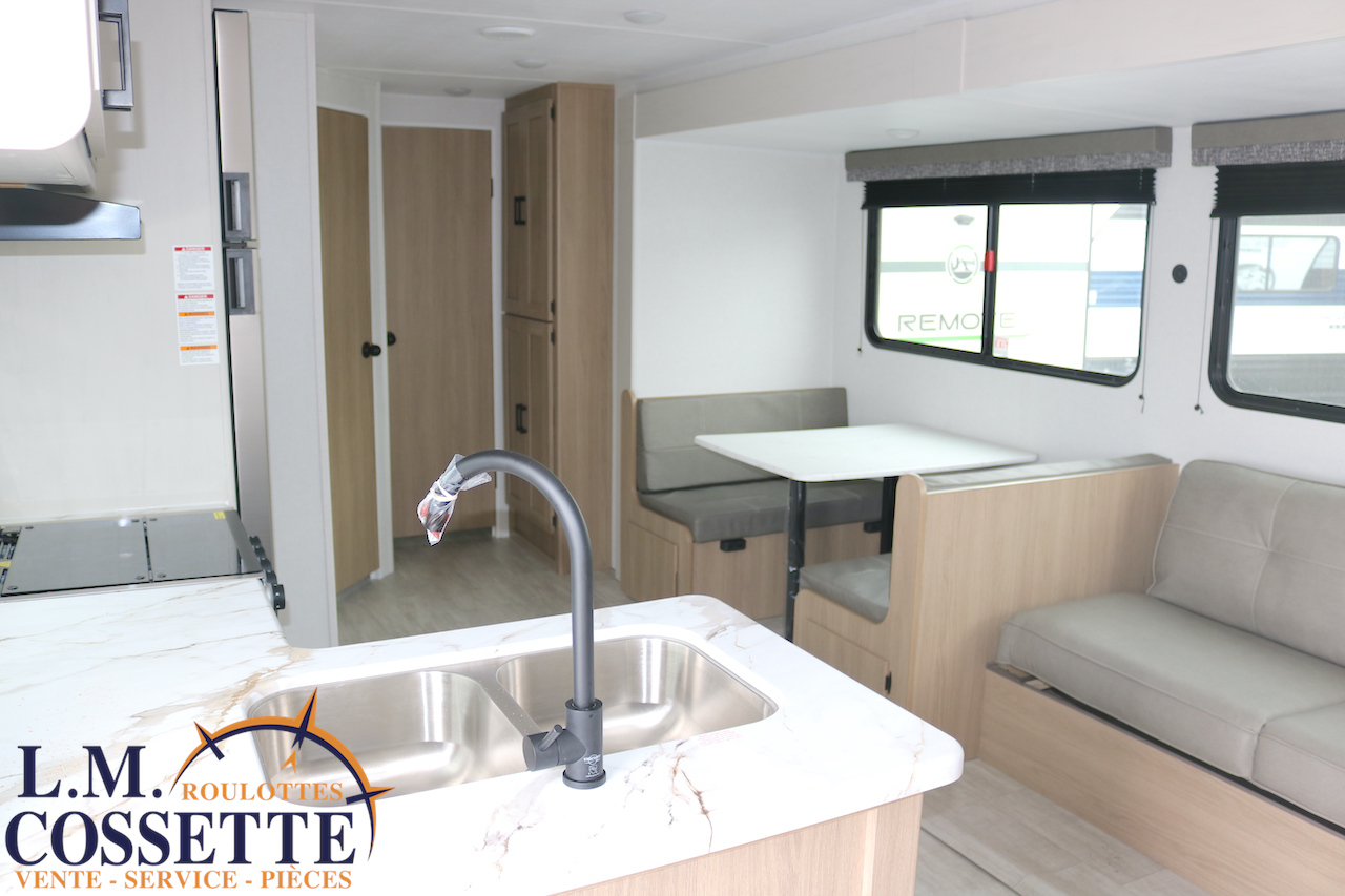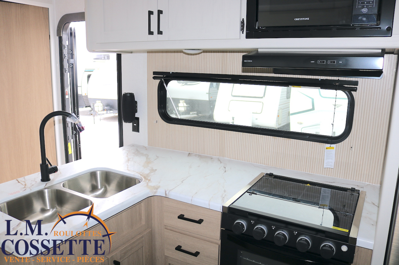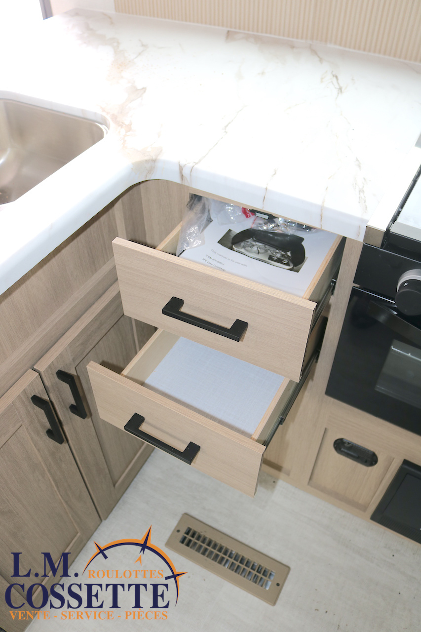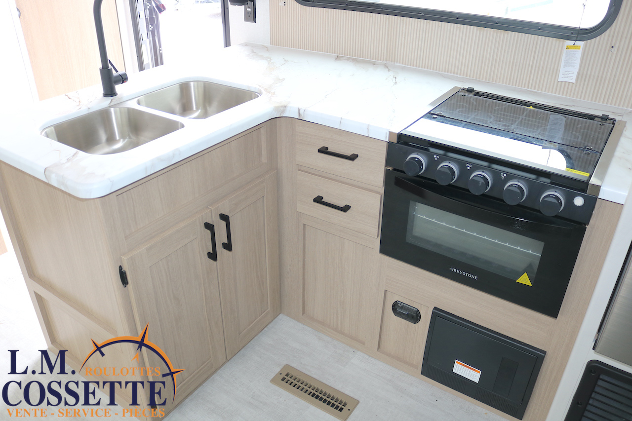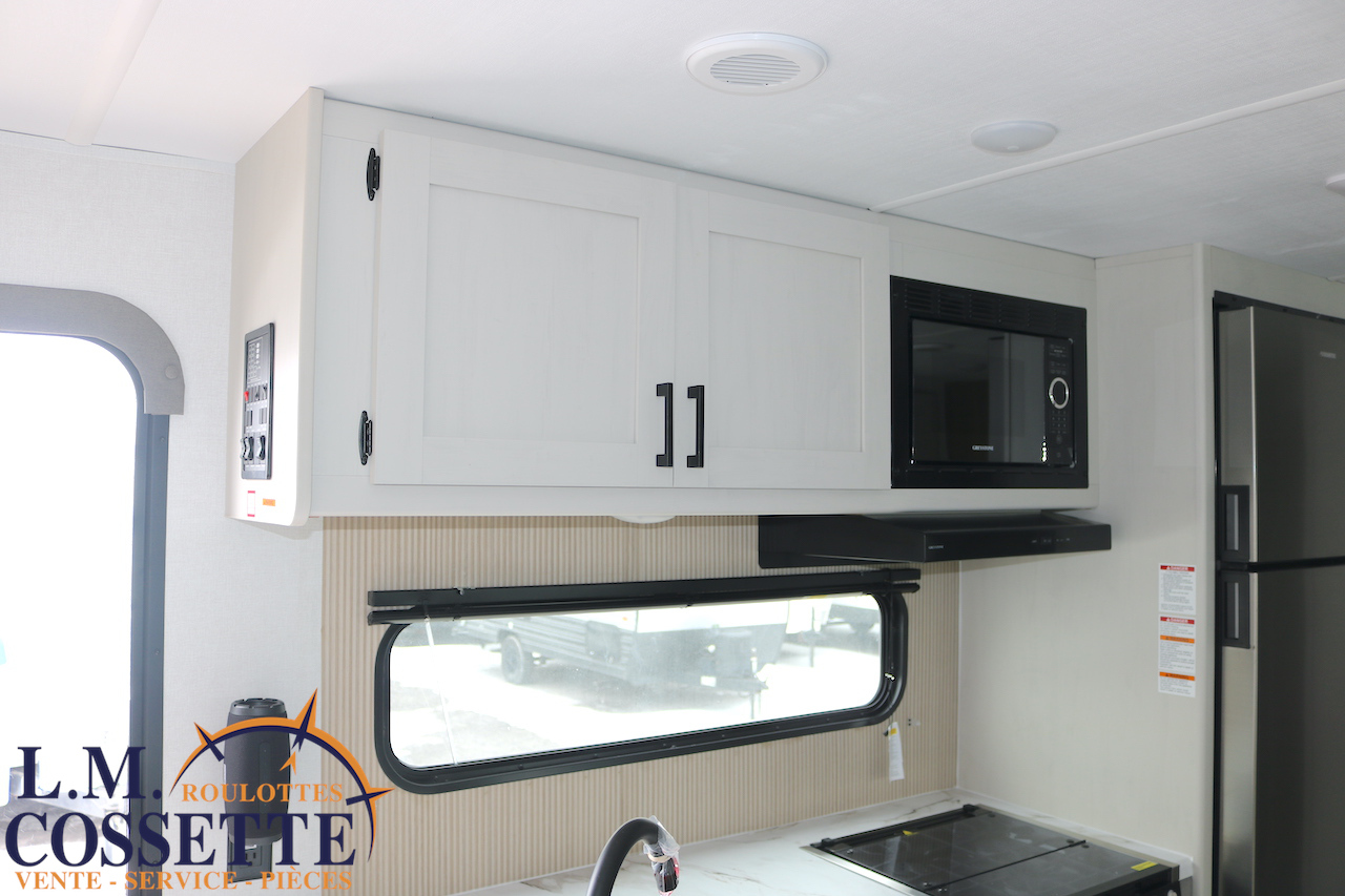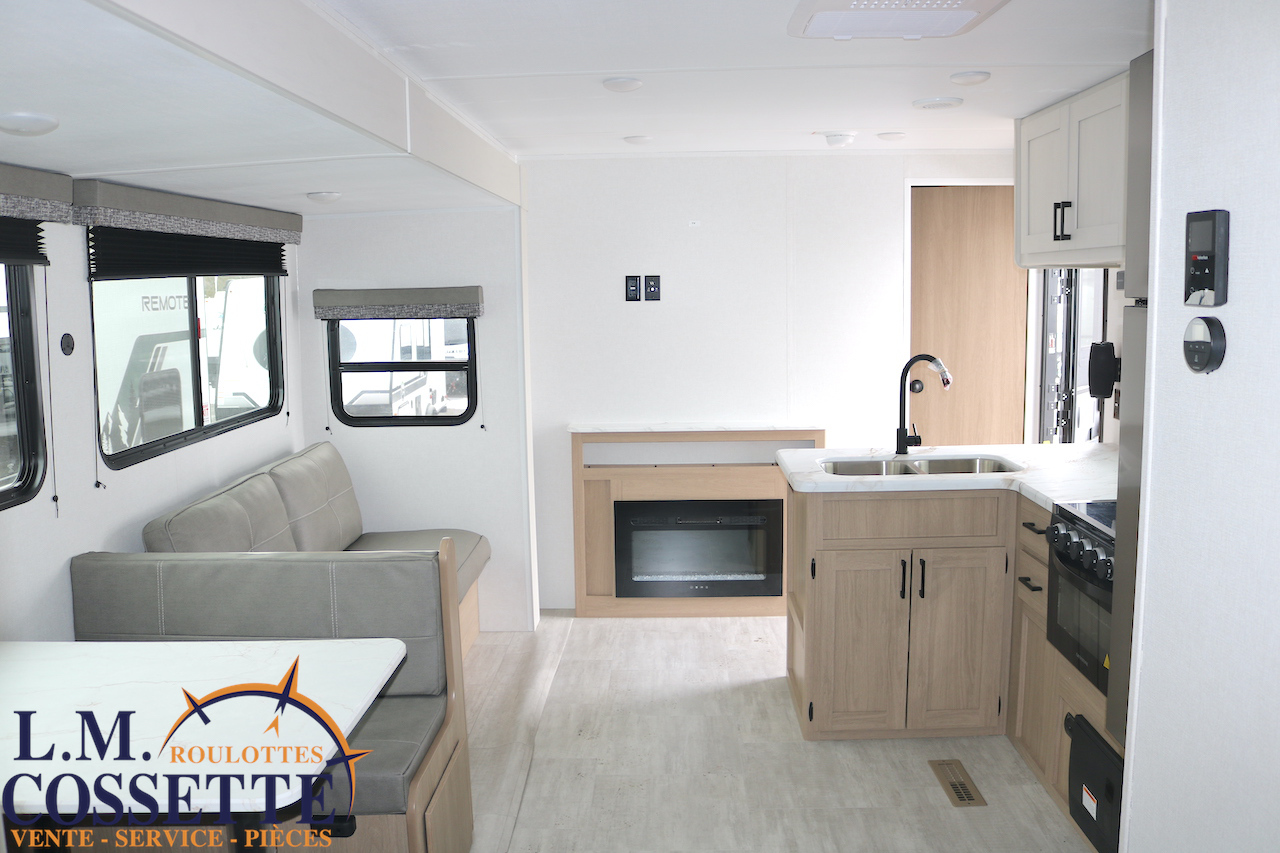 ATTRAYANTE ROULOTTE FAMILIALE AVEC GRAND LIT QUEEN SUPERPOSÉS !!! La chambre principale possède une rallonge pour le lit , dont les dimensions sont de 70 pouces x 80 pouces . Cette chambre est spacieuse , et possède plusieurs tiroirs , ainsi qu’un garde-robe . Elle possède , de plus , une pratique lingerie dans le petit couloir face à la salle de bain . La deuxième chambre , quand à elle , possède deux grand lits queen ( 60 pouces x 80 pouces ) superposés . Elle est équipé d’une petite cuisine extérieure ! Venez la voir , ce modèle vous séduira ! Vous pouvez nous rejoindre au (819)378-2491 .
