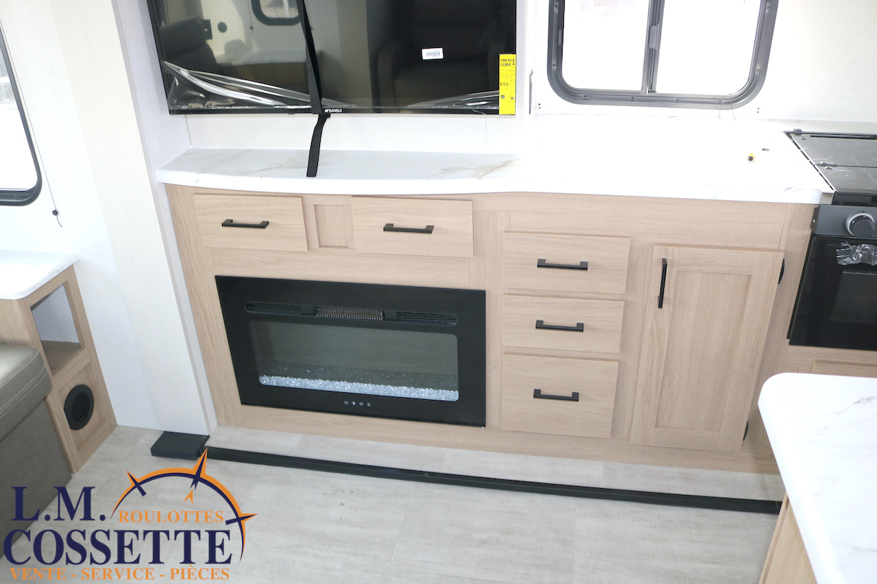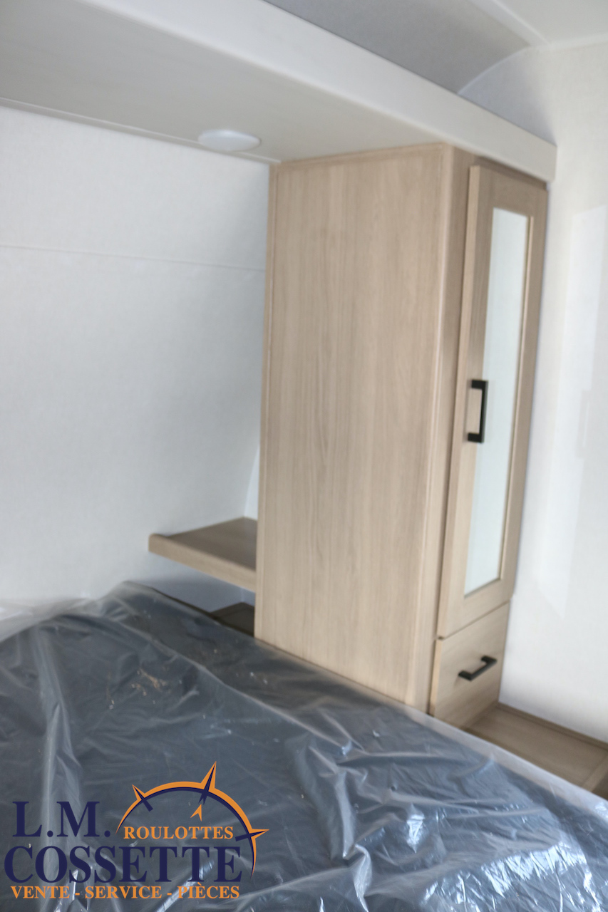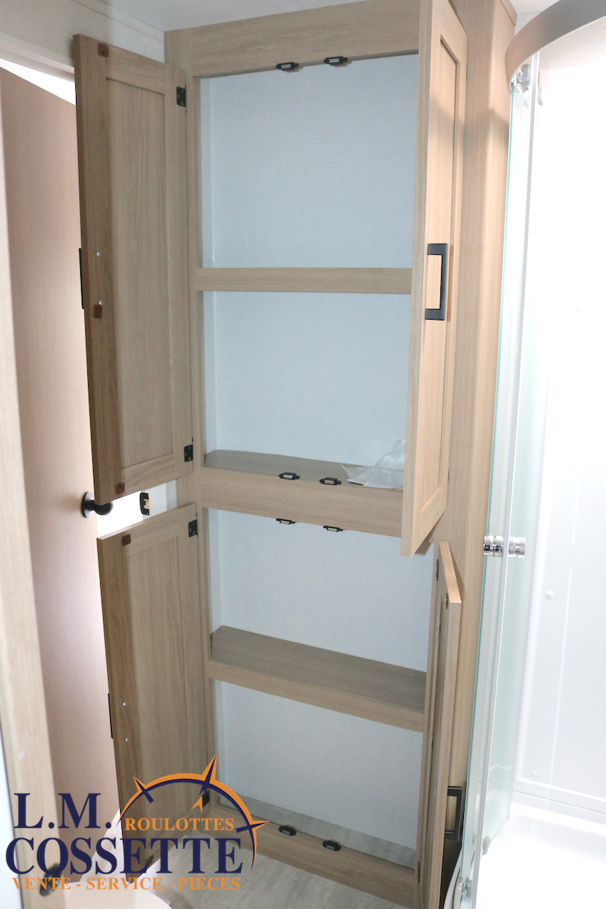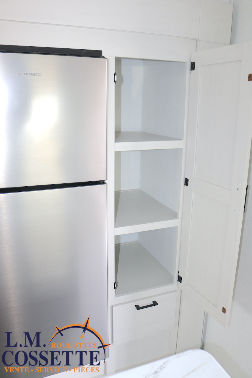 SOMPTUEUSE ROULOTTE POUR COUPLE AVEC SALLE DE LAVAGE !!! Elle possède deux rallonges , face à face , permettant d’avoir un immense espace central , dans lequel se trouve un ilot ! L’ilot comprend un petit comptoir lunch muni de deux tabourets . Le rangement dans la cuisine est tout simplement incroyable , avec un grand nombre de tiroirs , ainsi qu’un grand garde-manger . Elle est équipé d’une salle de lavage ( laveuse/sécheuse inclus ) , avec rangement et comptoir pour plier le linge . La salle de bain est spacieuse , et comprend une grande lingerie . Venez la voir , vous tomberez sous le charme de cette magnifique roulotte . Vous pouvez nous rejoindre au (819)378-2491 .
