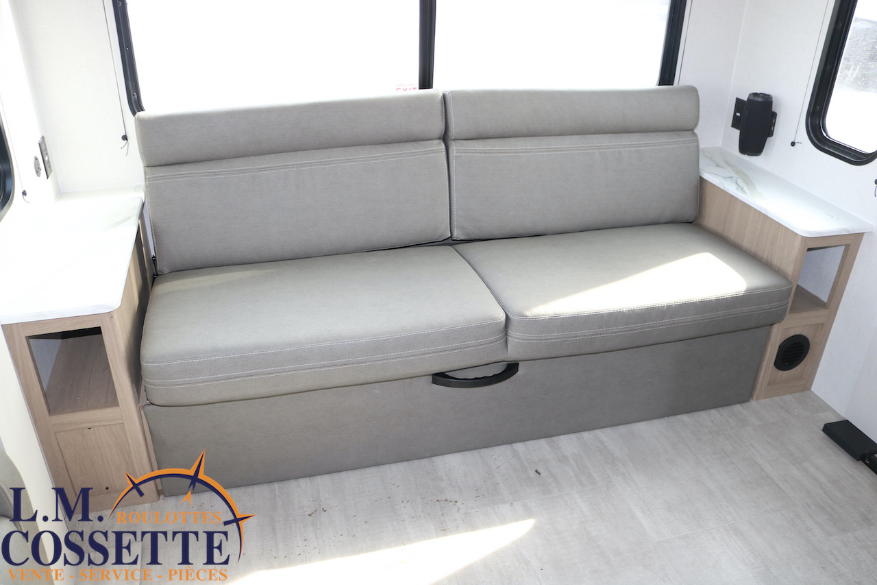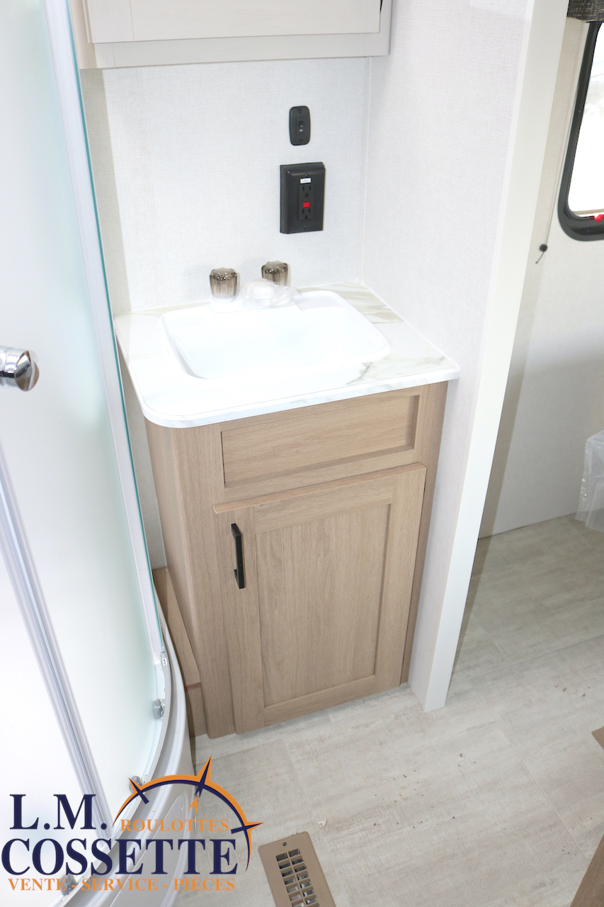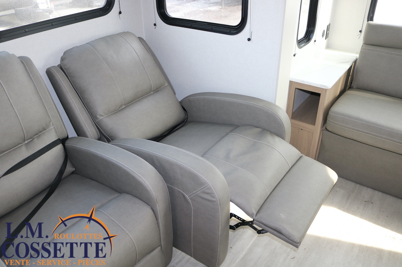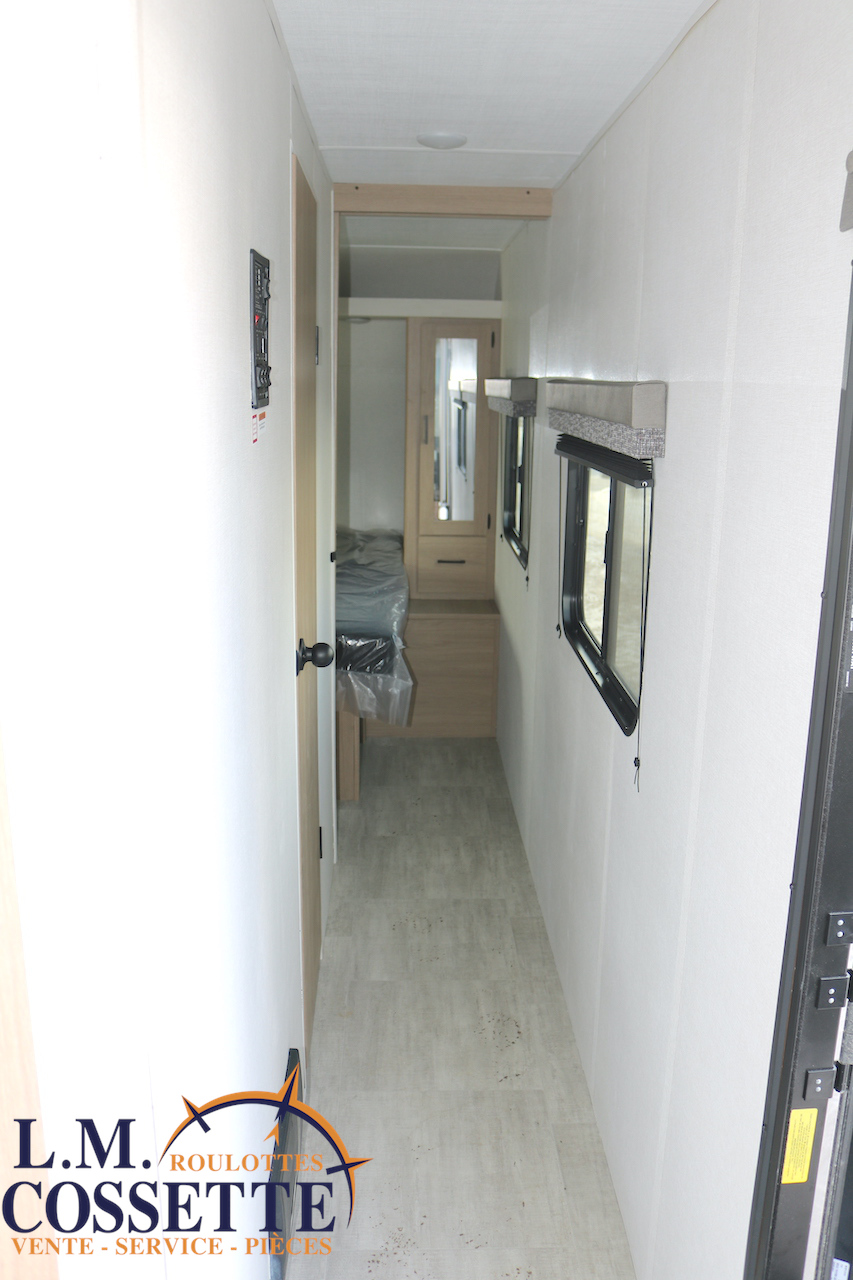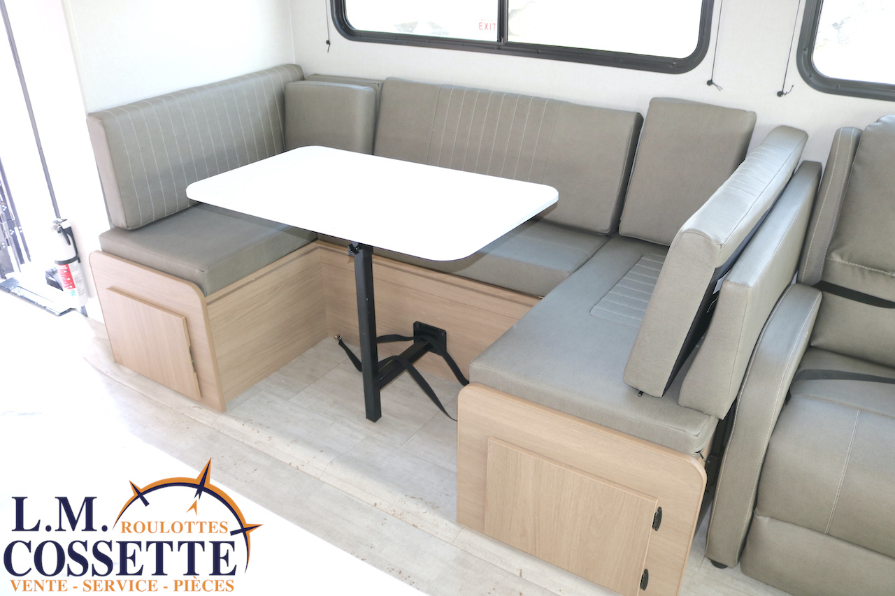SOMPTUEUSE ROULOTTE POUR COUPLE AVEC SALLE DE LAVAGE !!! Elle possède deux rallonges , face à face , permettant d’avoir un immense espace central , dans lequel se trouve un ilot ! L’ilot comprend un petit comptoir lunch muni de deux tabourets . Le rangement dans la cuisine est tout simplement incroyable , avec un grand nombre de tiroirs , ainsi qu’un grand garde-manger . Elle est équipé d’une salle de lavage ( laveuse/sécheuse inclus ) , avec rangement et comptoir pour plier le linge . La salle de bain est spacieuse , et comprend une grande lingerie . Venez la voir , vous tomberez sous le charme de cette magnifique roulotte . Vous pouvez nous rejoindre au (819)378-2491 .