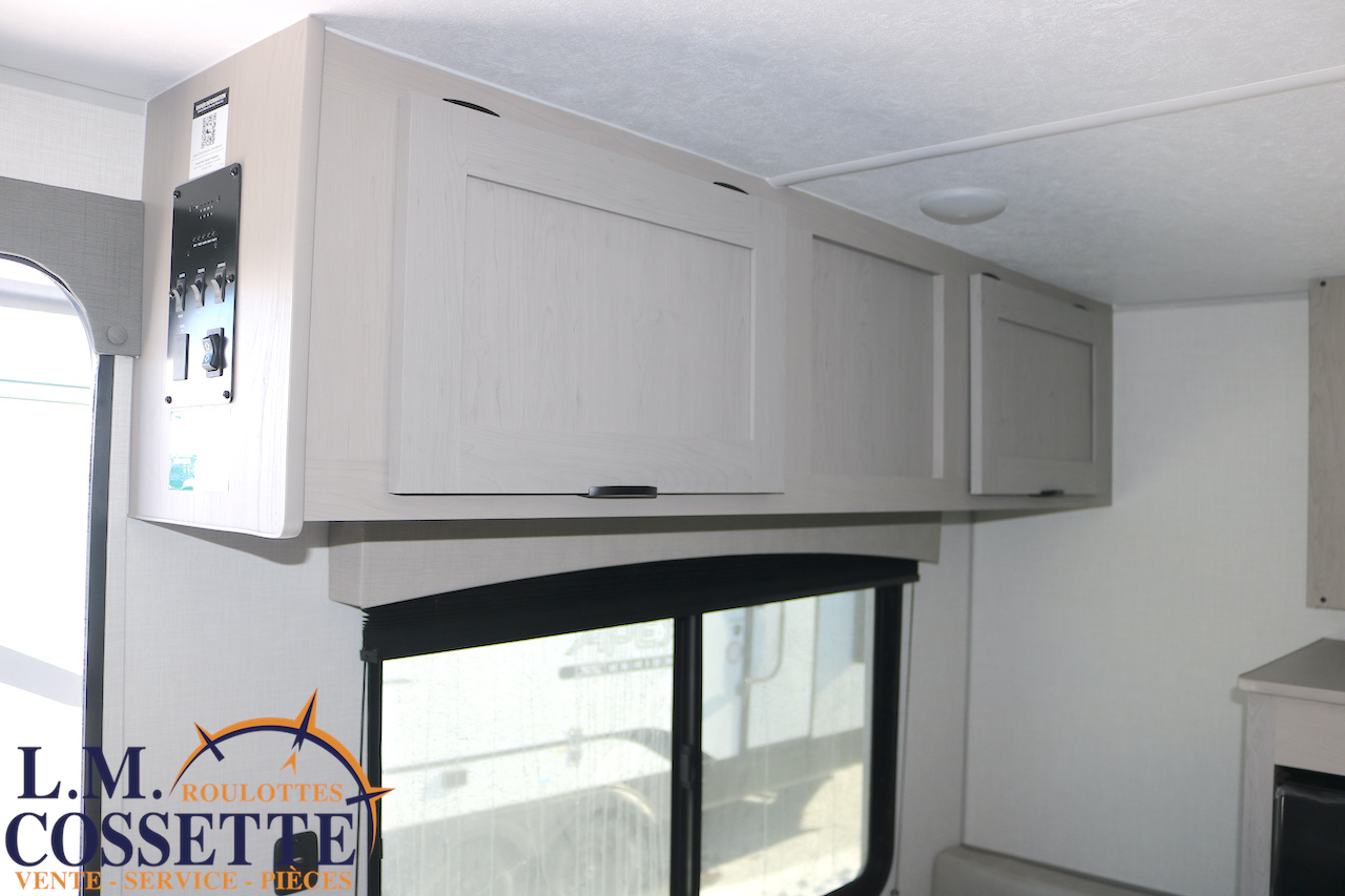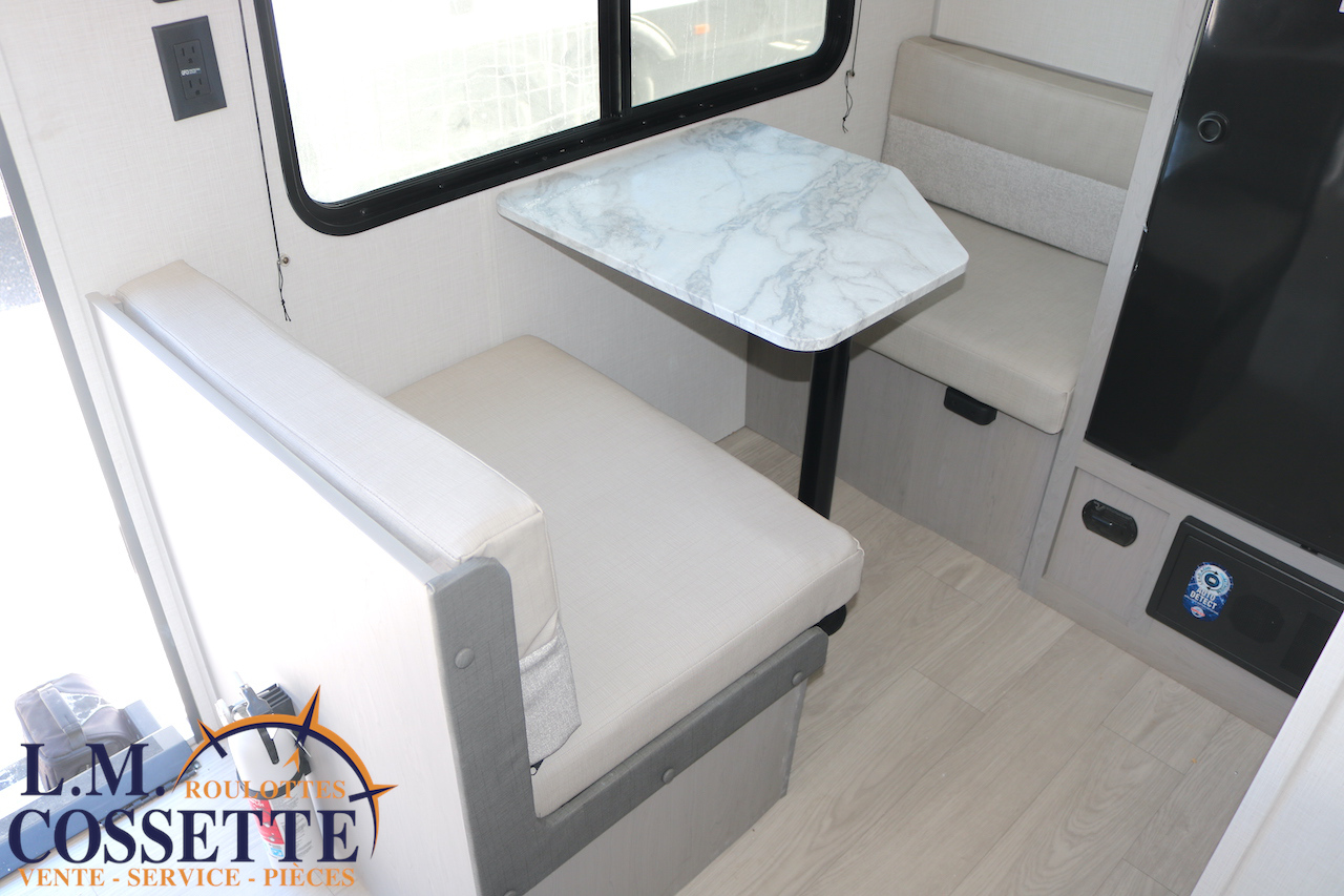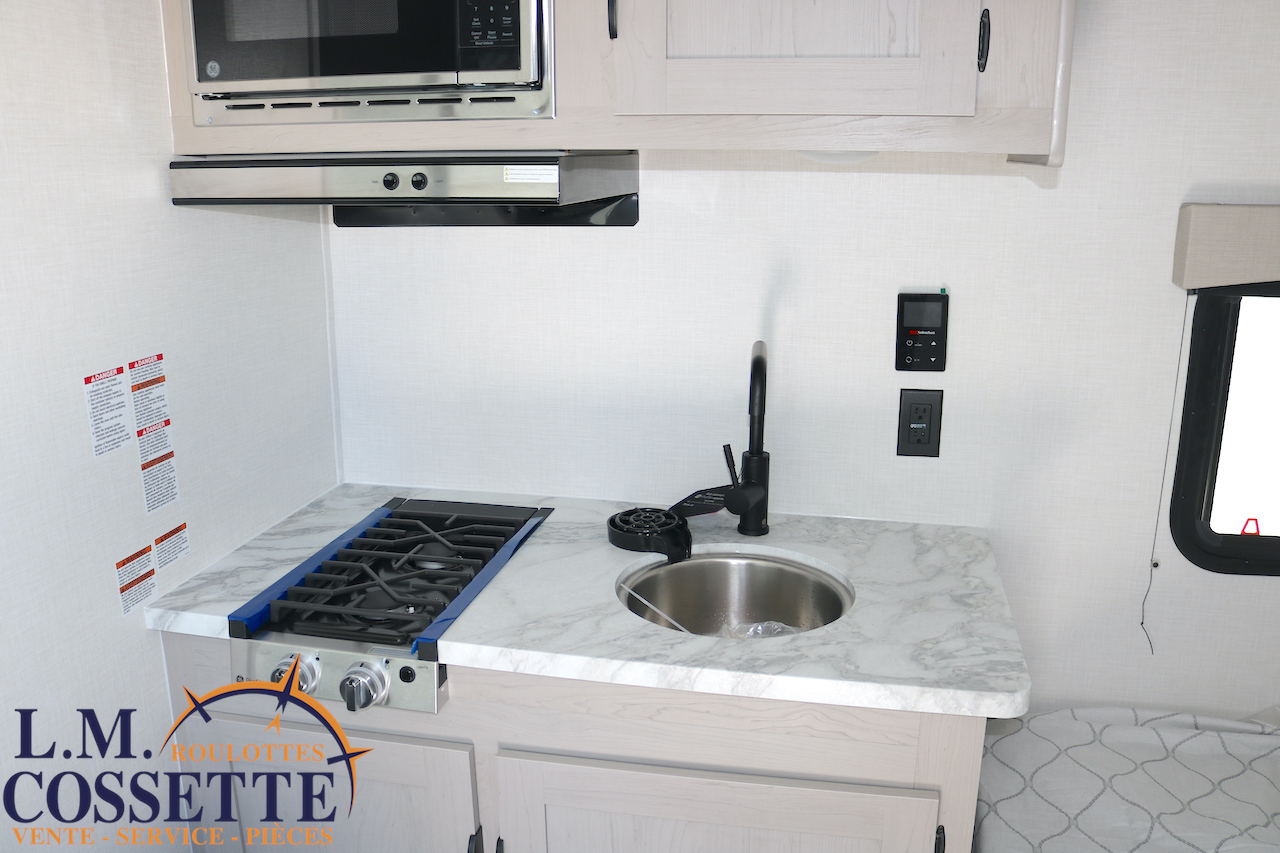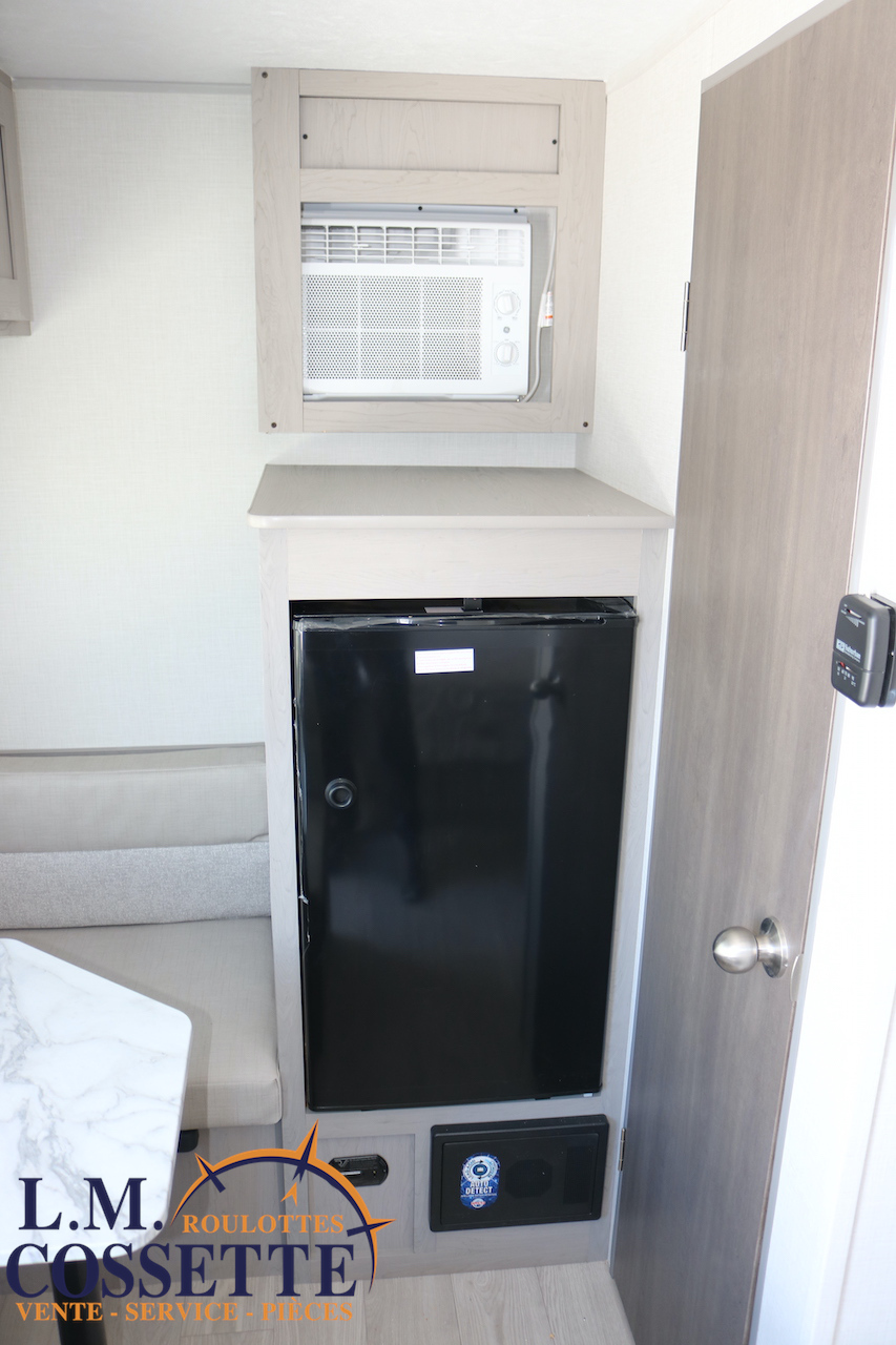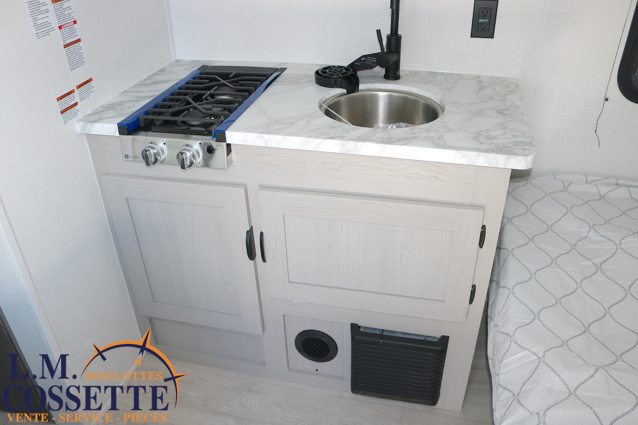 MIGNONNE PETITE ROULOTTE POUR COUPLE !!! Très légère , seulement 2525 lbs , elle possède tout le nécessaire pour vos sorties de camping ! Un grand lit double avec rangement à l’extrémité et sous le lit , une petite banquette avec une grande fenêtre vis à vis , ainsi qu’une toilette à côté de la douche . Le comptoir est fonctionnel et muni d’un lave-verres à l’évier . Le coffre extérieur est grand . Venez la voir , ses nombreux avantages vont vous surprendre ! Vous pouvez nous rejoindre au (819)378-2491 .