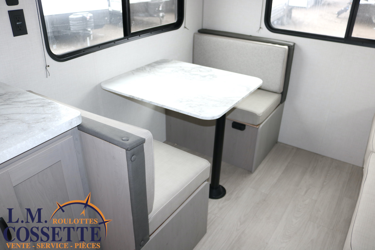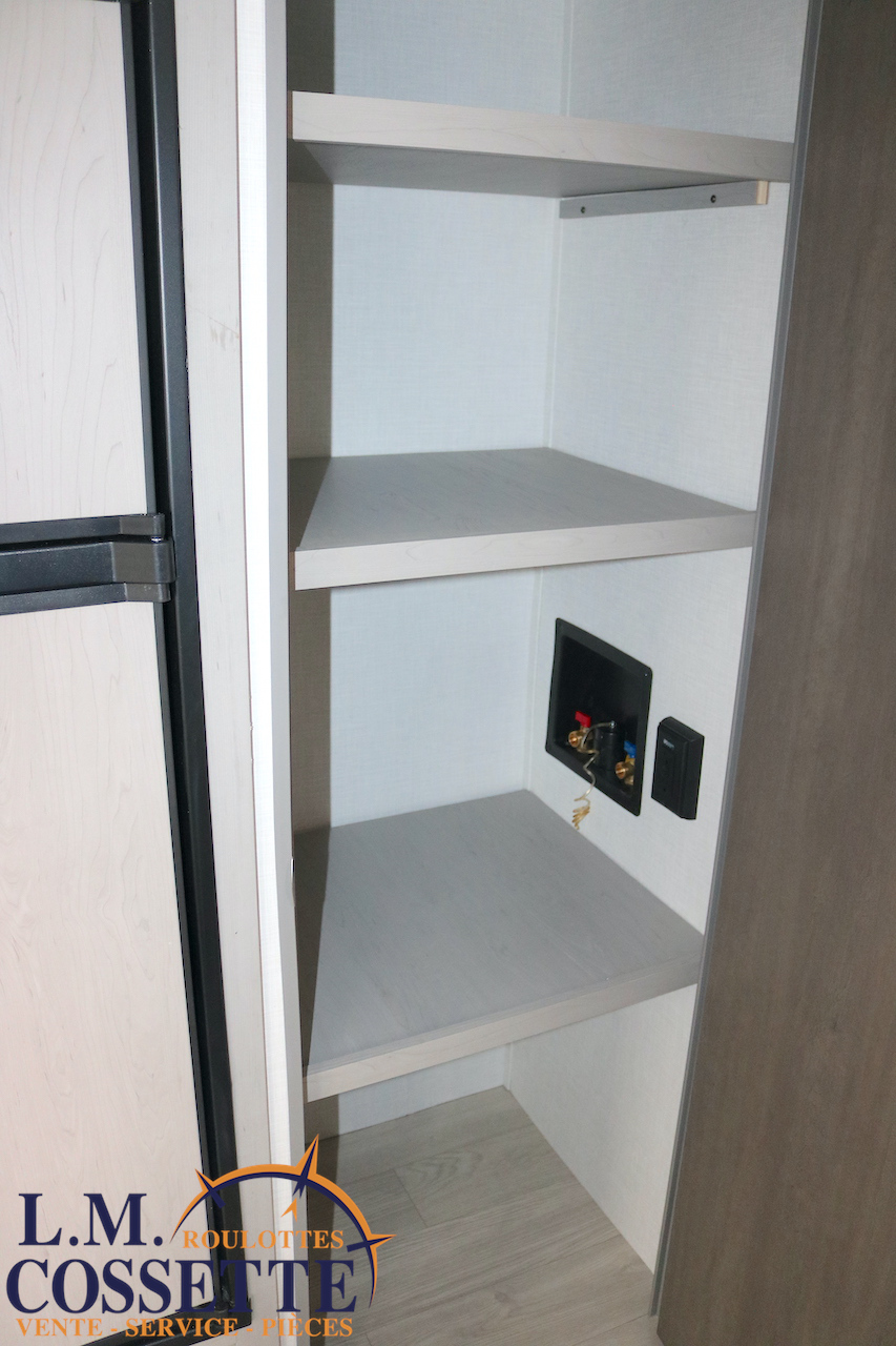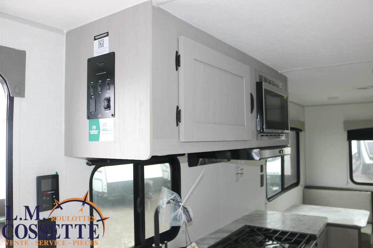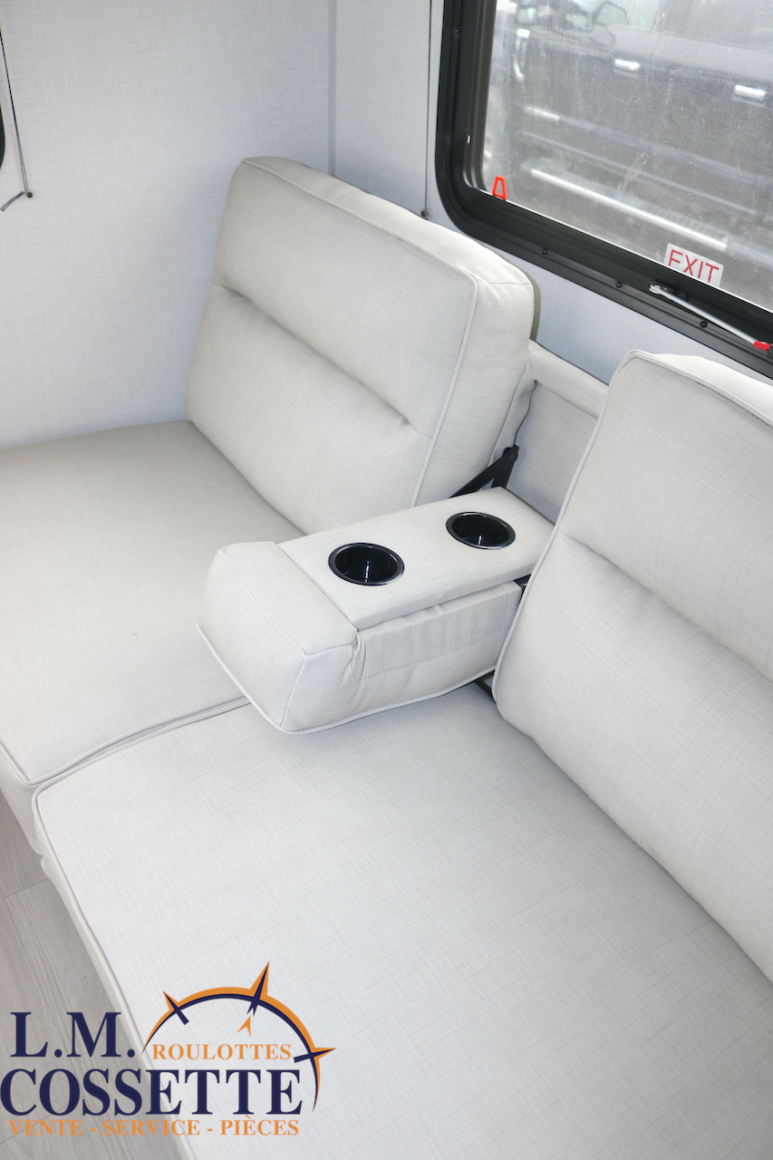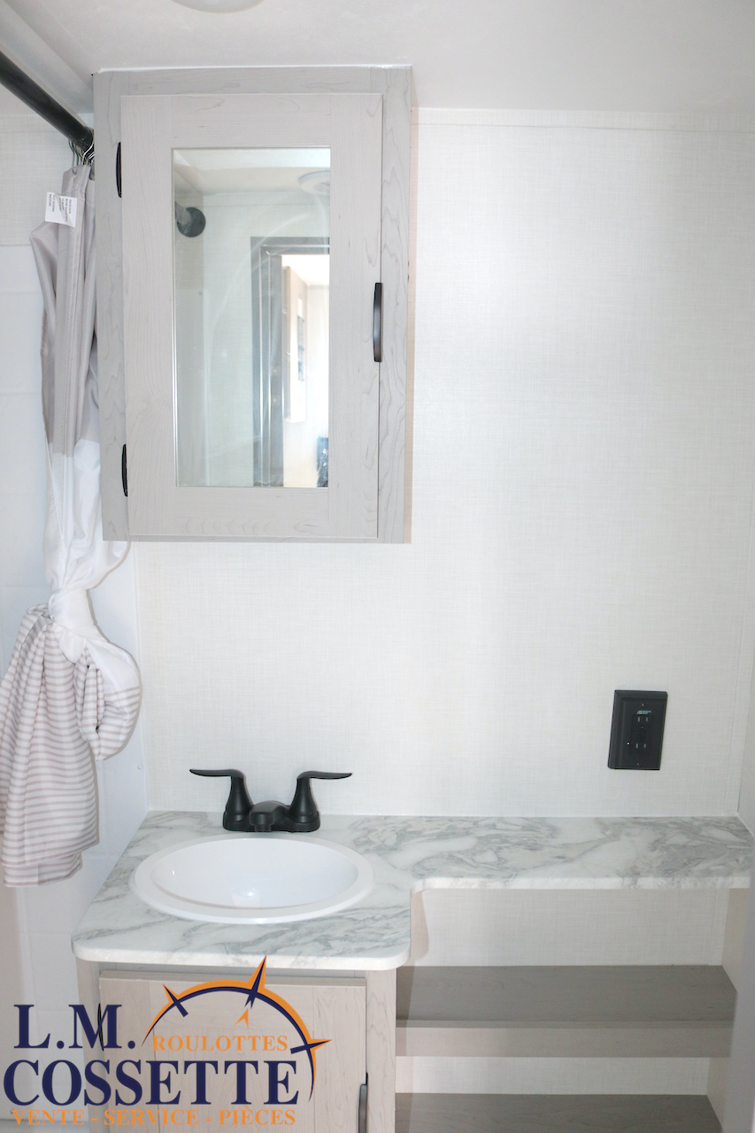 ÉTONNANTE ROULOTTE AVEC GRANDE FENESTRATION ARRIÈRE !!! Son lit à l’avant , est accessible des deux côtés . L’évier dans la cuisine est grand , et le comptoir comprend un bel espace de travail . Le garde-manger , situé tout juste à côté du réfrigérateur , est immense ! Le divan peut se transformer en lit , et comprend un espace de rangement en-dessous ! Le coffre extérieur fait la largeur de la roulotte . Venez la voir , ses nombreux avantages vous étonnerons ! Vous pouvez nous rejoindre au (819)378-2491 .