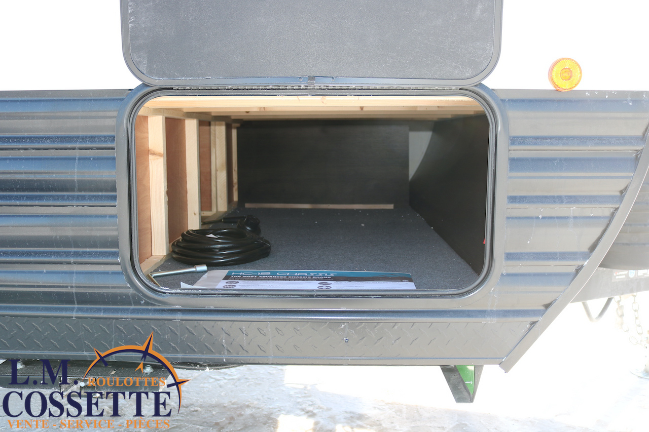 SUBLIME MODÈLE POUR COUPLE !!! Elle possède une grande banquette en ”U” , avec de très grandes fenêtres tout autour , permettant d’avoir une vue incroyable ! Elle possède , de plus , une multitude d’espaces de rangement , armoires , tiroirs , ainsi qu’un pratique garde-manger tout juste à côté du réfrigérateur . Le comptoir comprend un bel espace de travail . Venez la voir , vous tomberez sous le charme de cette belle roulotte aux commodités incroyable ! Vous pouvez nous rejoindre au (819)378-2491 .