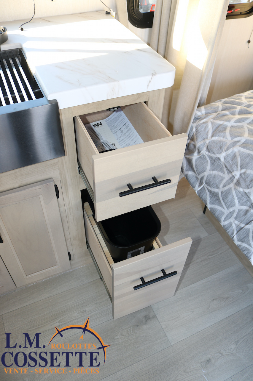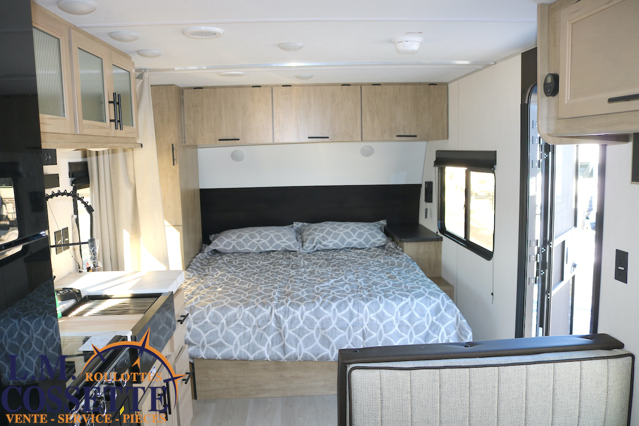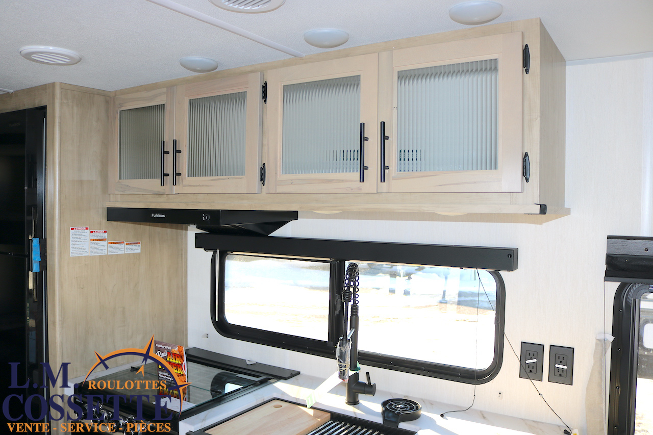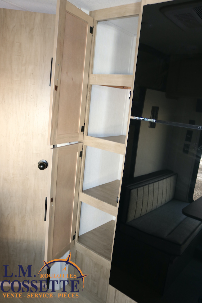 SUPERBE ROULOTTE FAMILIALE AVEC LITS DOUBLE SUPERPOSÉS !!! Ses fenêtres sont très grandes , permettant d’avoir un éclairage intérieur incroyable ! Elle possède un très pratique garde-manger , situé tout juste à côté du réfrigérateur . Le lit avant est très large , et possède de petit espaces de chaque côté pour y mettre vos effets personnel . Venez la voir , son décor chaleureux , ainsi que ses nombreux avantages vous étonnerons . Vous poouvez nous rejoindre au (819)378-2491 .