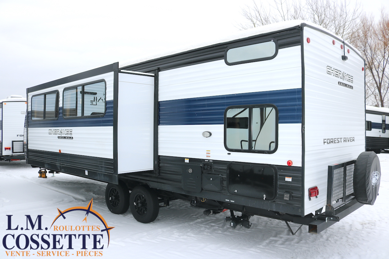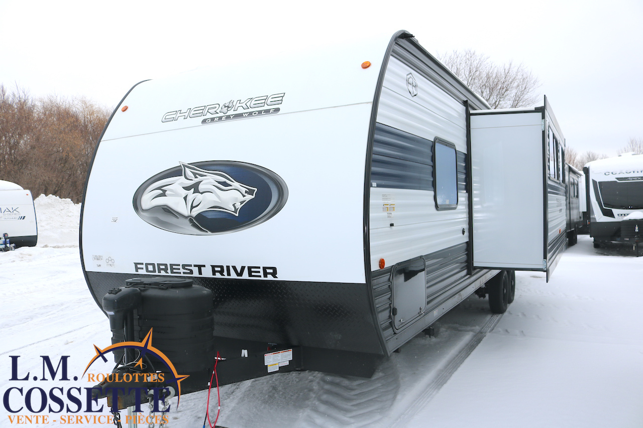 ROULOTTE FAMILIALE PAR EXCELLENCE !!! Elle possède vraiment tout ce dont vous avez besoin , une grande rallonge pour la banquette en “U” et un divan , un accès direct à la salle de bain par l’extérieur , deux lits double superposés , ainsi qu’une cuisine extérieure ! De plus , elle possède un immense garde-manger caché derrière le meuble télé et un autre à côté de la porte d’entrée ! Ses coffres extérieur sont très grand . Venez la voir , tout ces avantages et son décor des plus chaleureux vous étonnerons ! Vous pouvez nous rejoindre au (819)378-2491 .