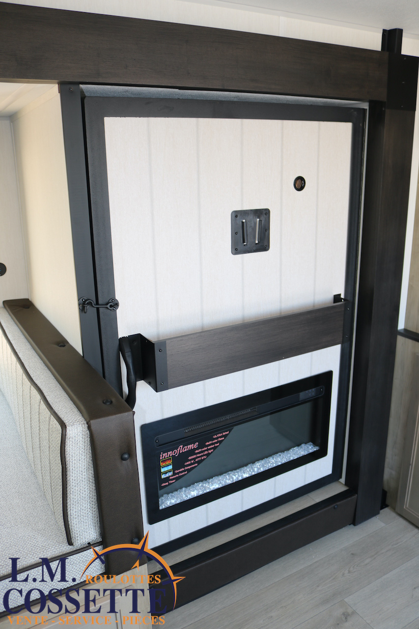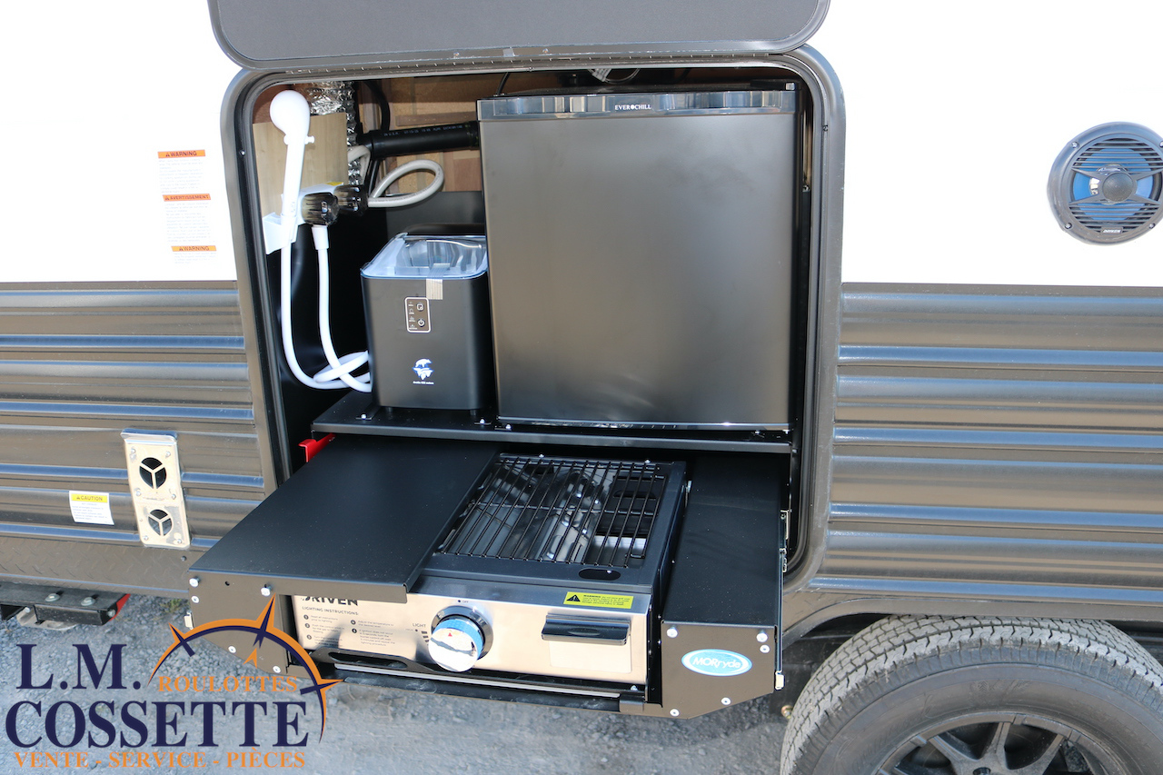 CHALEUREUSE ROULOTTE POUR 2 PERSONNES !!! Elle possède énormément de rangement , que ce soit dans la cuisine , ou la chambre à coucher . Un immense garde-manger est dissimulé derrière le meuble de la télévision ! Elle possède , de plus , un grand garde-manger tout juste à côté du réfrigérateur . Le comptoir de cuisine est très grand . Les fenêtres de cette roulotte sont très grandes , permettant d’avoir un éclairage naturel fabuleux . Elle est équipé d’une petite cuisine extérieure muni d’un petit frigo 110 volts , un grill , et même d’une machine à glaces . Venez la voir , ses avantages vous séduirons ! Vous pouvez nous rejoindre au (819)378-2491 .
