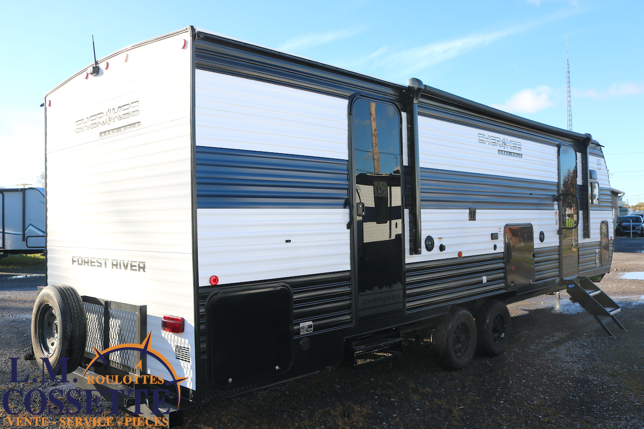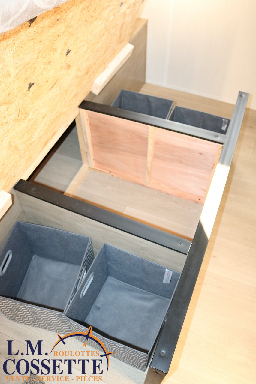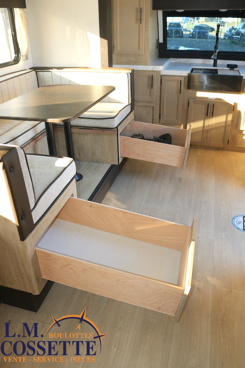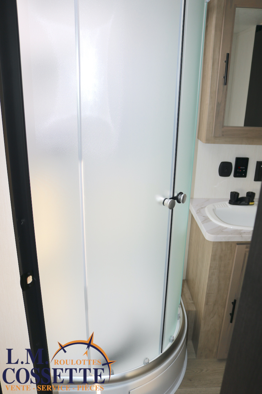 SENSATIONNEL ROULOTTE AVEC CUISINE À L’AVANT !!! La cuisine est tout simplement magnifique , avec beaucoup d’espace comptoir , des tiroirs et plein d’armoires . Elle possède , de plus , un grand garde-manger dissimulé derrière l’emplacement de la télé et du foyer électrique ! La chambre , à l’arrière , possède un lit de 66 pouces x 74 pouces . Elle est équipé d’une cuisine extérieure comprenant un petit frigo 110 volts , un grill et une machine à glaces . Son coffre extérieur à l’arrière , est très spacieux . Venez la voir , vous tomberez sous le charme de cette magnifique roulotte . Vous pouvez nous rejoindre au (819)378-2491 .