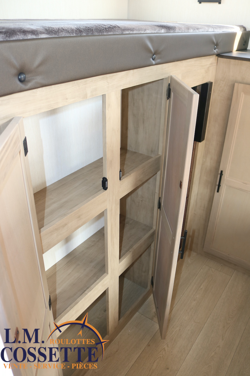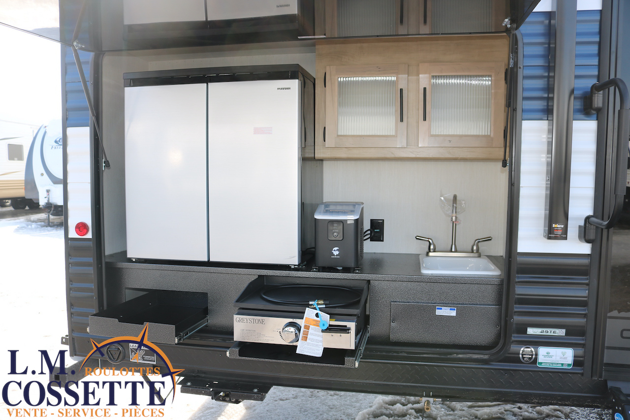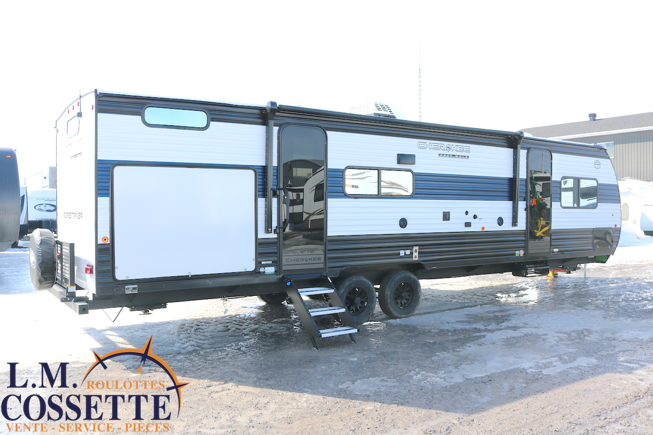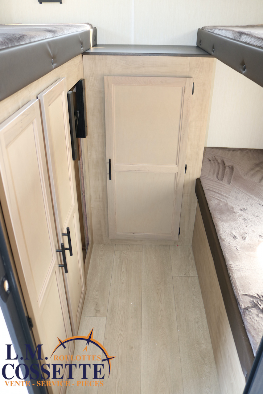 SUPERBE ROULOTTE FAMILIALE AVEC CHAMBRE FERMÉE POUR LES ENFANTS !!! La chambre d’enfants peut coucher 3 enfants , et possède le rangement nécessaire pour leurs vêtements ou autres . Dans la cuisine , un immense garde-manger , très pratique , est situé tout juste à côté du réfrigérateur . La salle de bain est spacieuse , et possède un accès direct par l’extérieur . Elle est , de plus , équipé d’une grosse cuisine extérieure comprenant un frigo 2 portes , un grill et même une machine à glaces . Venez la voir , vous allez l’adorer ! Vous pouvez nous rejoindre au (819)378-2491 .