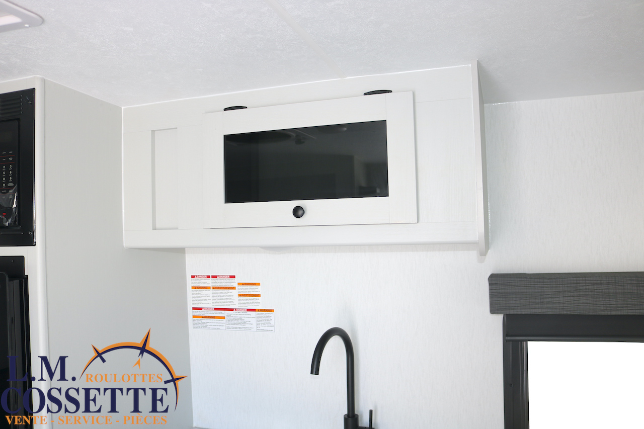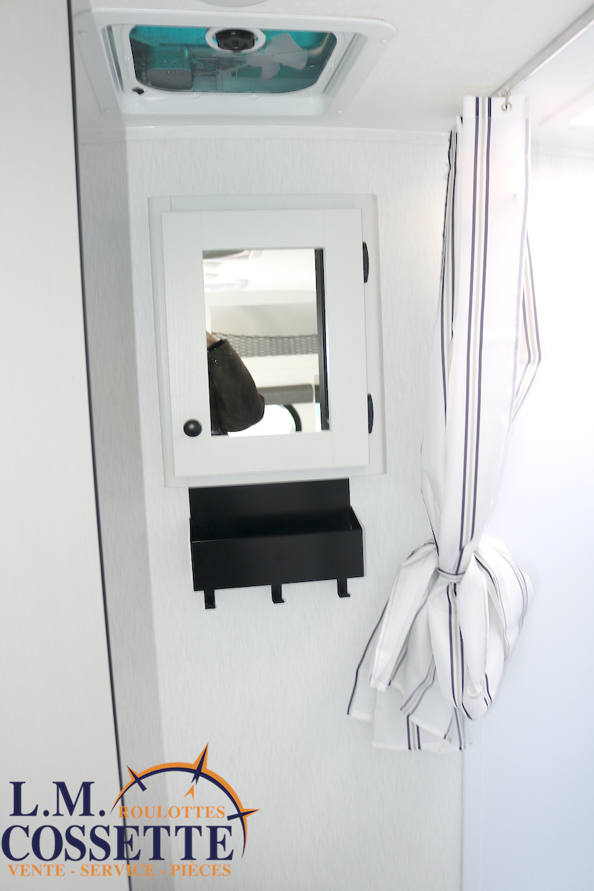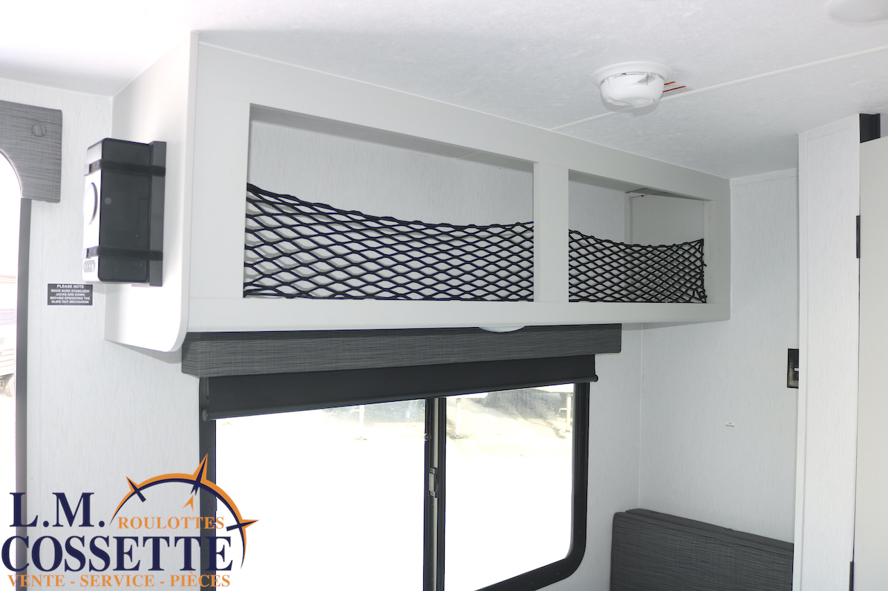 MIGNONNE PETITE ROULOTTE POUR COUPLE !!! Toute petite , avec un poids de seulement 2678 lbs , elle possède vraiment tout le nécessaire pour aller camper ! Une belle grande fenêtre surplombe la petite banquette pour deux personnes , qui peux se transformer en lit pour dépanner . Le comptoir , fonctionnel , comprend un évier en stainless , des espaces de rangement et deux tiroirs . Le coffre extérieur est vaste , et fait la largeur de la roulotte . Venez la voir , son côté luxueux et son équipement incroyable vous ravirons . Vous pouvez nous rejoindre au (819)378-2491 .