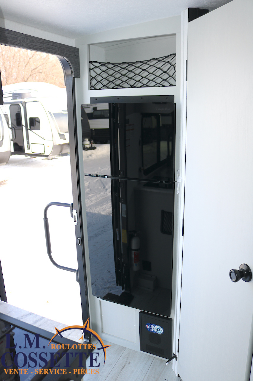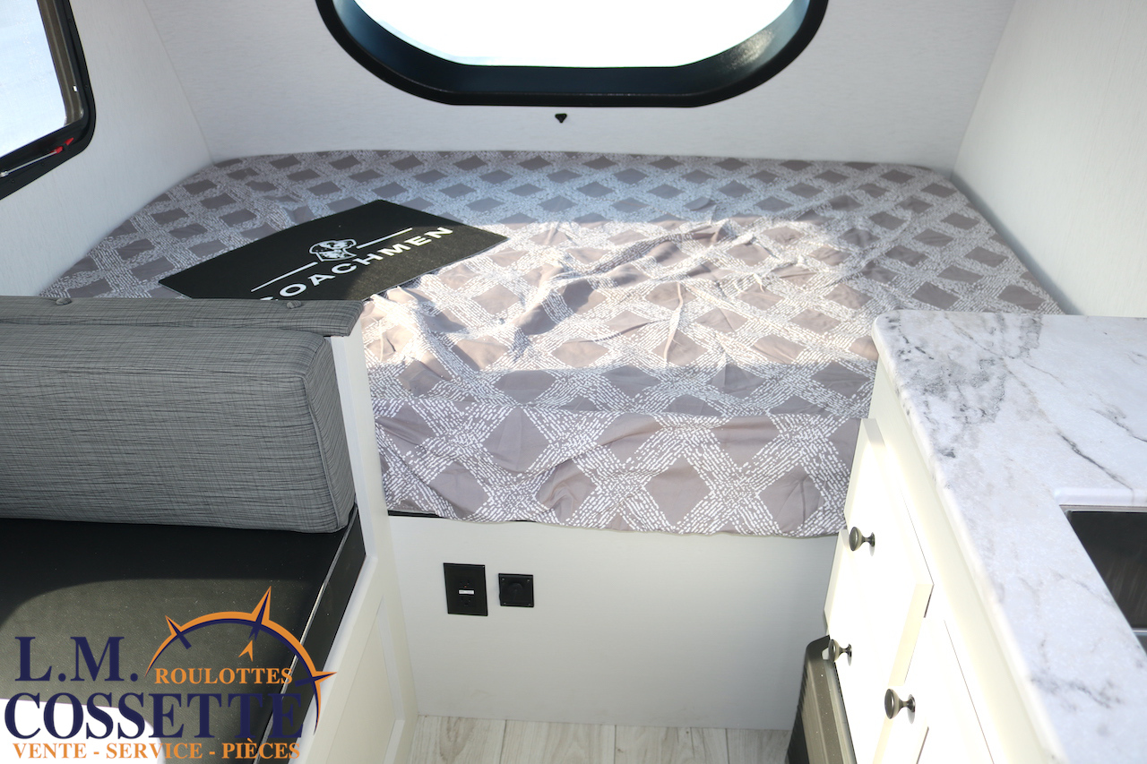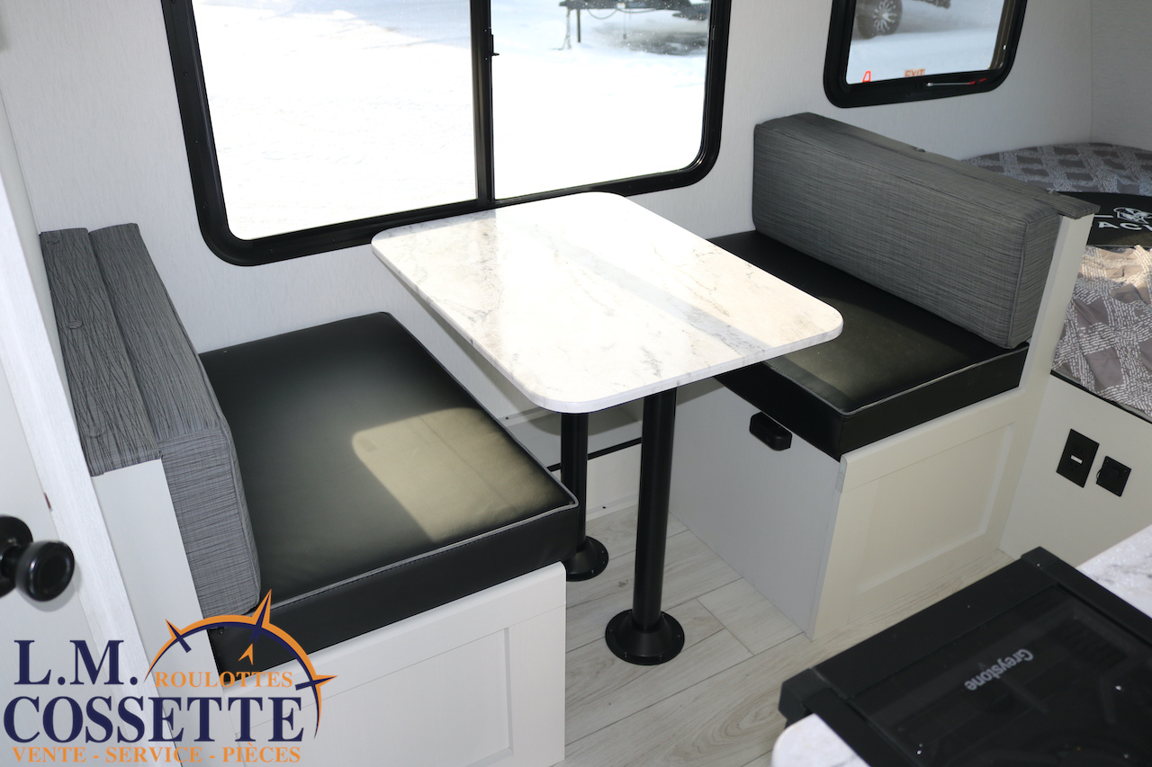 MAGNIFIQUE MODÈLE POUR COUPLE !!! Très légère , luxueuse , en fibre de verre Azdel , ce modèle a vraiment tout pour vous satisfaire ! Ses nombreuses fenêtres sont grandes , procurant un bel éclairage naturel . Son comptoir est vaste , et comprend 2 tiroirs , ainsi que de nombreux espaces de rangement . Son évier est en stainless . Le coffre extérieur est très vaste et fait la largeur de la roulotte . Venez la voir , la beauté de cette petite roulotte vous émerveillera ! Vous pouvez nous rejoindre au (819)378-2491 .