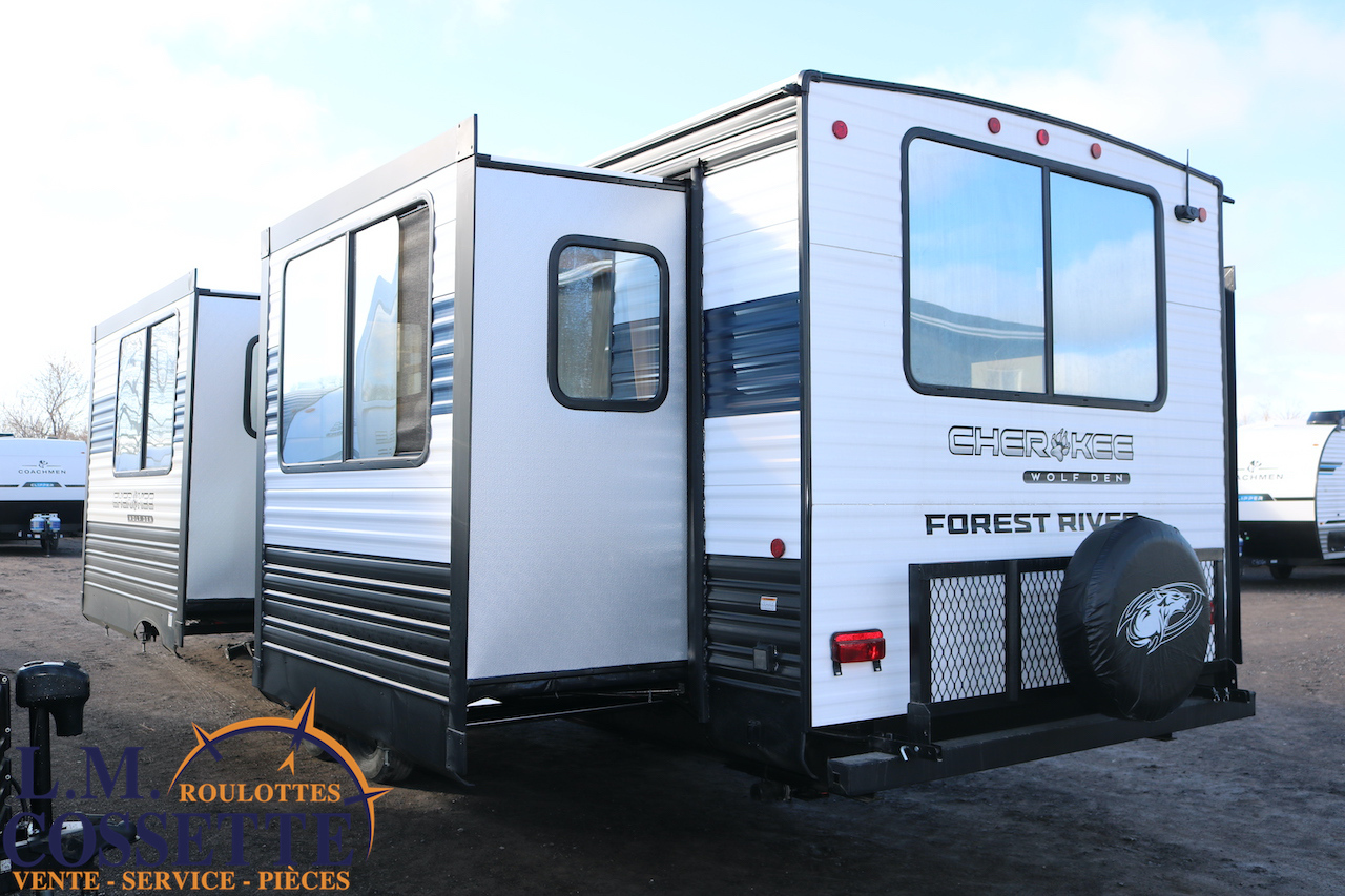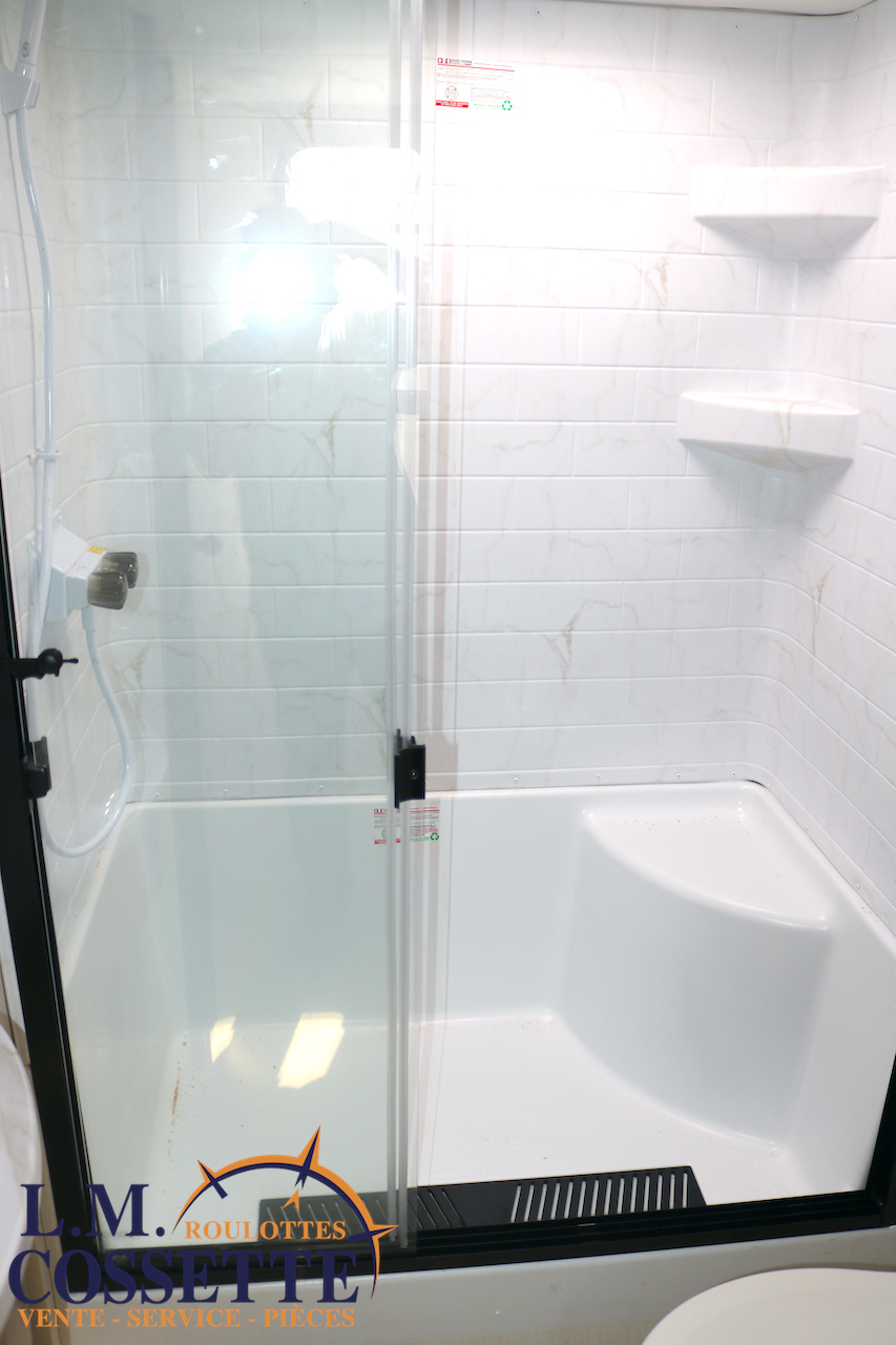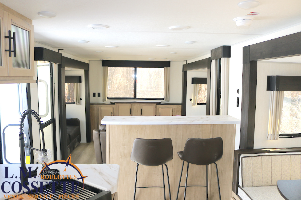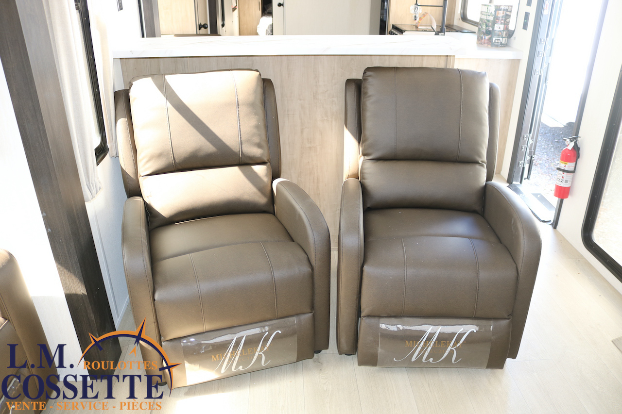 SPLENDIDE ROULOTTE AVEC IMMENSE SALON ARRIÈRE !!! Le salon arrière comprend deux divans muni d’appuis-jambes , ainsi que deux fauteuils muni , eux aussi , d’appuis-jambes . La fenestration arrière est incroyable grâce à ses multiples grandes fenêtres . De plus , un pratique comptoir lunch sépare la cuisine du salon . Dans la chambre , un rangement peut servir à installer une laveuse / sécheuse . La douche surdimensionnée , possède un petit banc , ainsi qu’une porte vitrée . Elle est équipé d’une petite cuisine extérieure comprenant un grill , un frigo , et même une machine à glaces . Venez la voir , vous serez étonné en la voyant ! Vous pouvez nous rejoindre au (819)378-2491 .