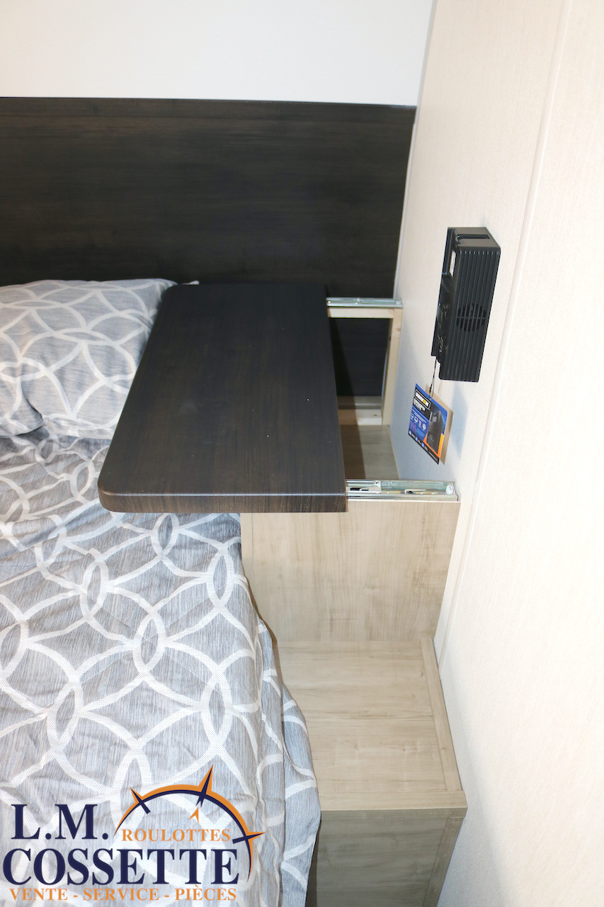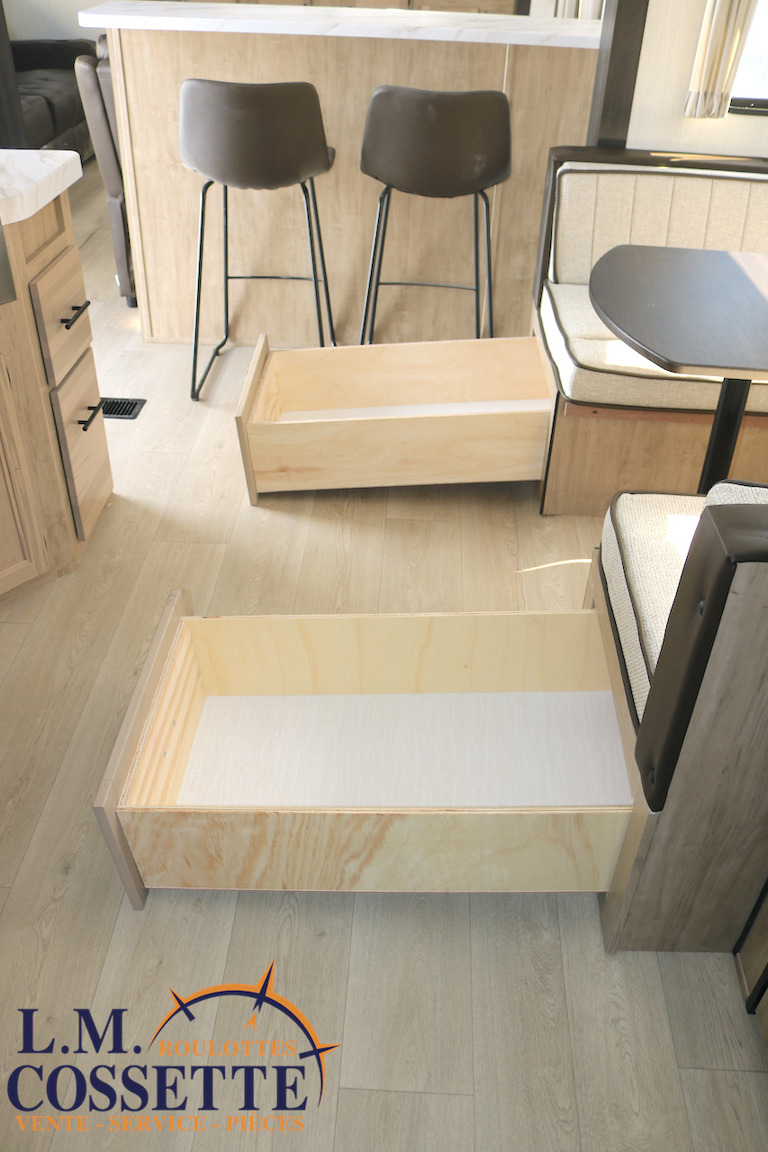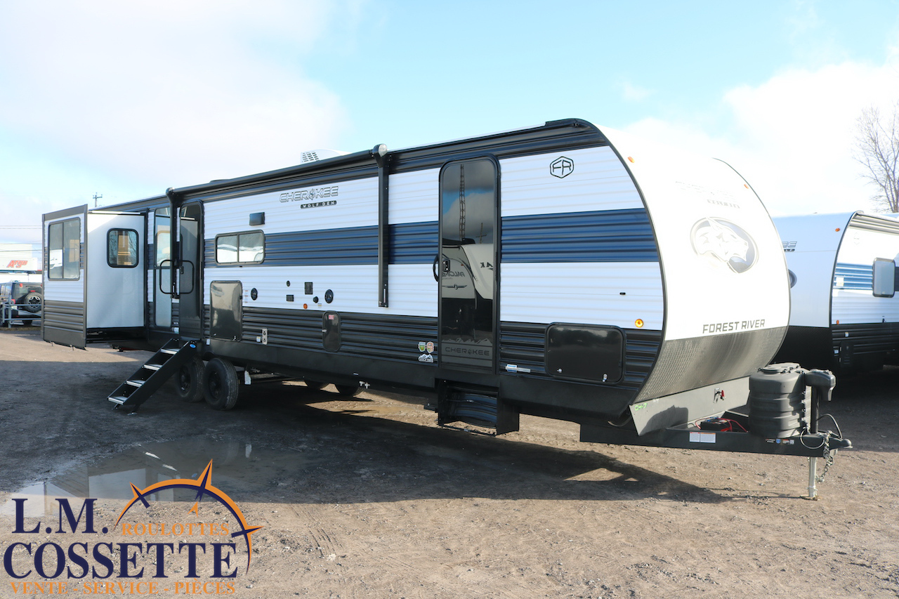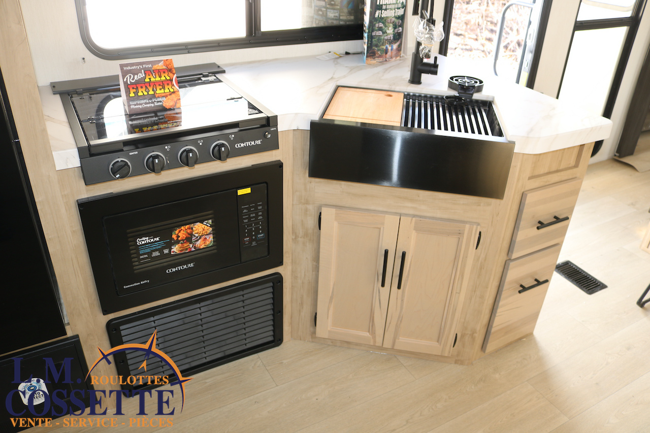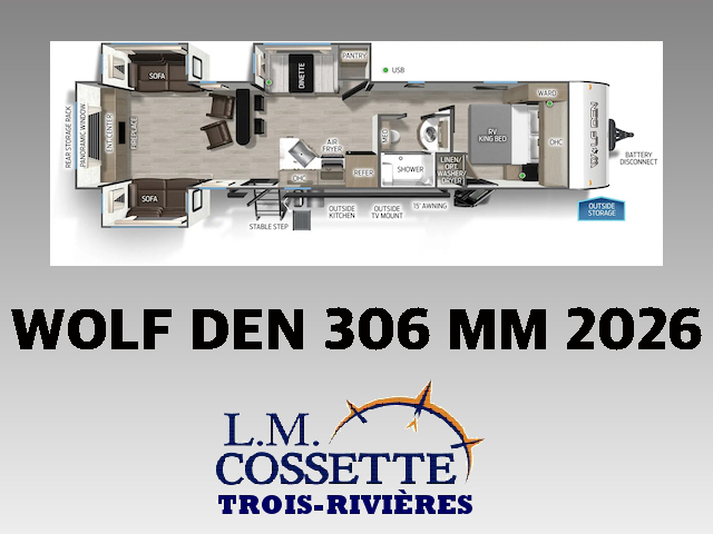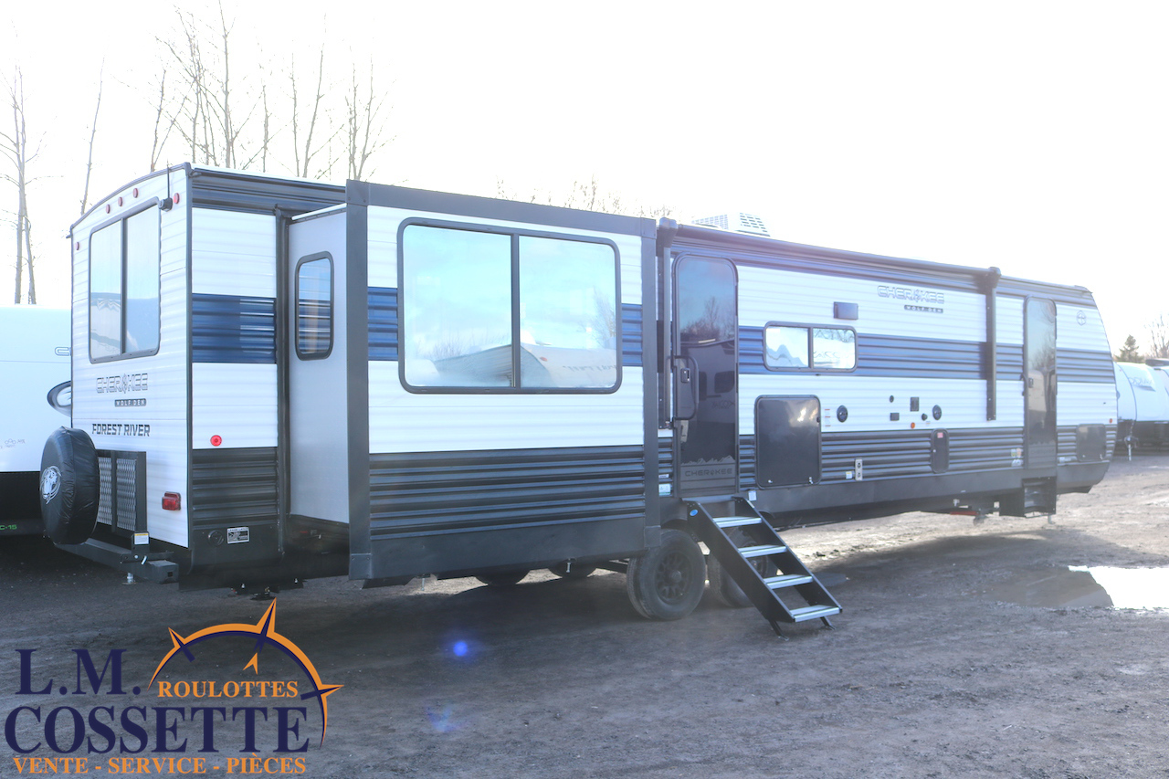 SPLENDIDE ROULOTTE AVEC IMMENSE SALON ARRIÈRE !!! Le salon arrière comprend deux divans muni d’appuis-jambes , ainsi que deux fauteuils muni , eux aussi , d’appuis-jambes . La fenestration arrière est incroyable grâce à ses multiples grandes fenêtres . De plus , un pratique comptoir lunch sépare la cuisine du salon . Dans la chambre , un rangement peut servir à installer une laveuse / sécheuse . La douche surdimensionnée , possède un petit banc , ainsi qu’une porte vitrée . Elle est équipé d’une petite cuisine extérieure comprenant un grill , un frigo , et même une machine à glaces . Venez la voir , vous serez étonné en la voyant ! Vous pouvez nous rejoindre au (819)378-2491 .